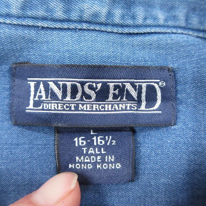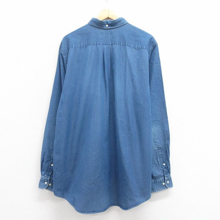 【商品名】 XL★古着 ランズエンド 長袖 ブランド シャツ メンズ 大きいサイズ ロング丈 コットン ボタンダウン 紺 デニム