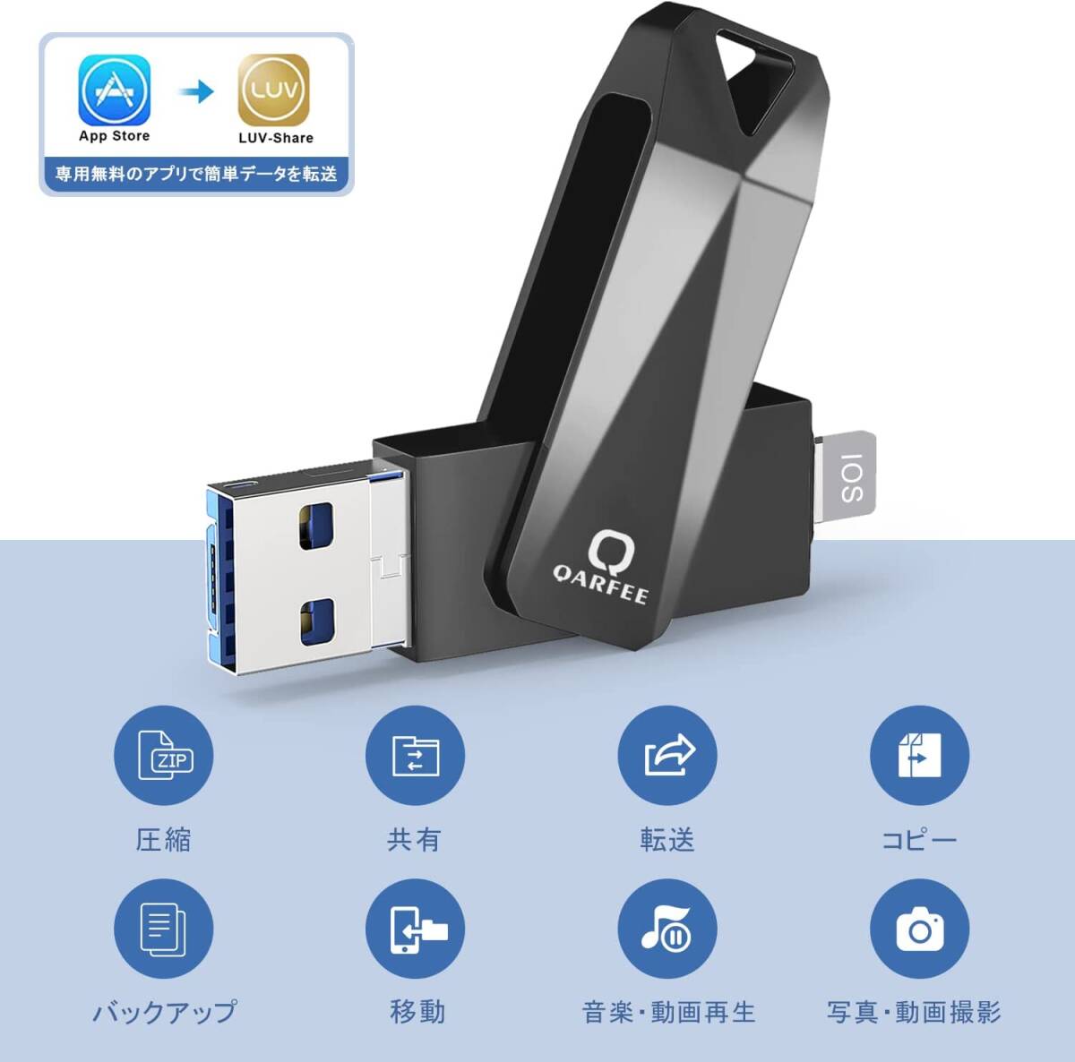 【専用アプリ・使いやすさ】usbメモリ アイフォンは挿入するだけで簡単に操作でき、データ送信/点検/動画・画像・資料などの編集ができます。また、パスワードを設定し、usbメモリ 128gb 高速でファイルの暗号化を行うだけではなく、アプリ本体への暗号化も行います。人気のusb アイフォン ランキングはストラップホールを搭載。ストラップを装着することで、持ち運びの際の紛失も防げます。【対応機種】アイフォン usbメモリ 128gはほとんどのスマホ デバイスと互換性があります。Phone 12pro、Phone 12、Phone XS MAX、 Phone X、Phone 8、Phone 7 Plus / Phone 7 / Phone 6s Plus / Phone 6s / Phone 6s / Phone 6 plus / Phone 5s / Phone 5c /Phone 5 / Phone 4 / Pad Pro / Pad 4 / Pad Air / Pad miniシリーズ/ Pod touch 5 / Macbook Pro(★ご注意:Pad ProやMacebookのType-cに対応出来ますが。usb メモリ 人気 ランキングをアップグレードする必要があります、ご了承ください。)