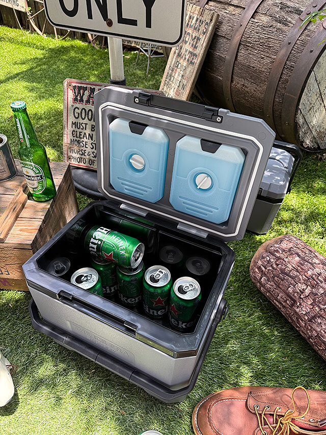 クーラーボックスには欠かせない「保冷剤」を 最初からフタの裏面に装備していて