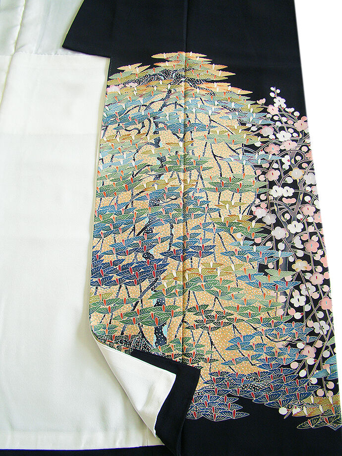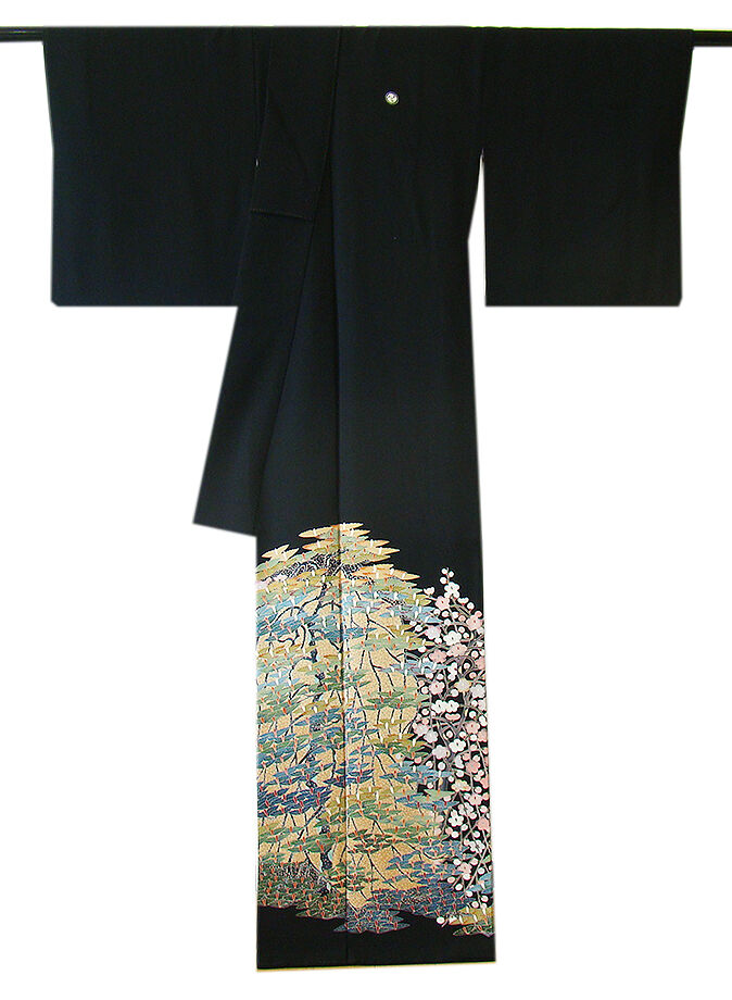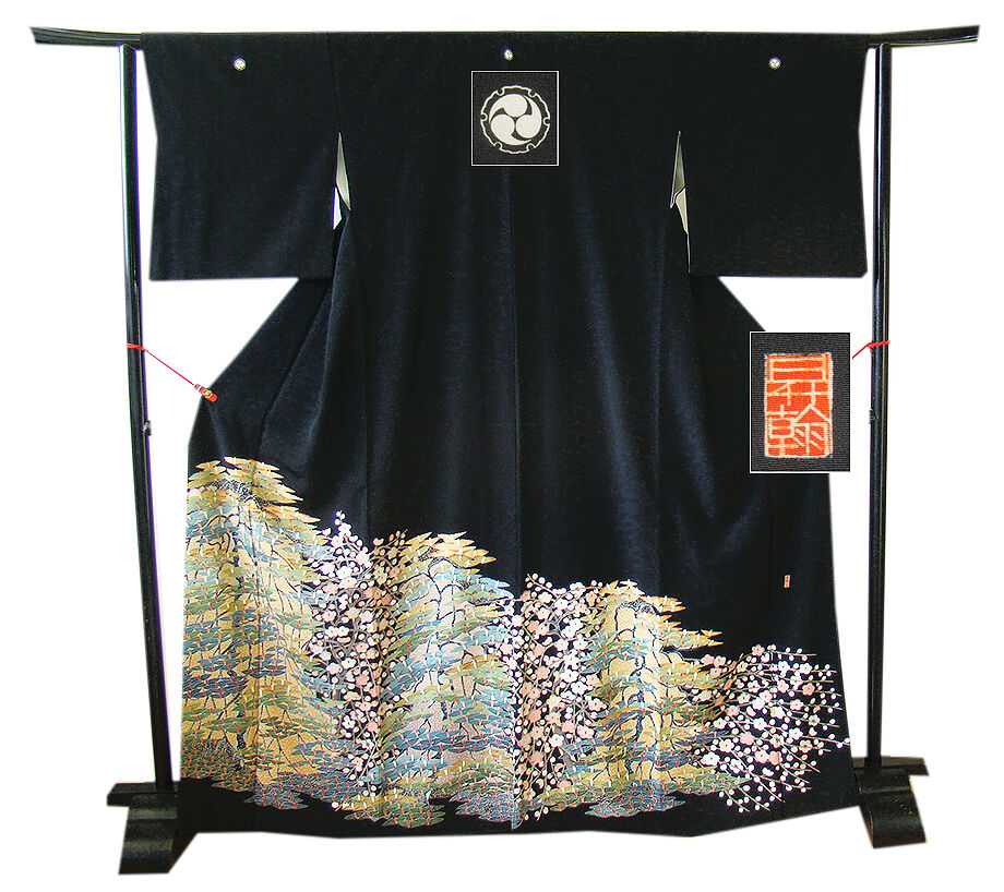| ちょっと一言 | 日本情緒が匂い立つ豪華な着物姿を謳い、気品に満ちた艶やかな作家物の黒留袖です。 生き生きとした仕上がりを演出する祝いめでたい今日に相応しい逸品です。 |