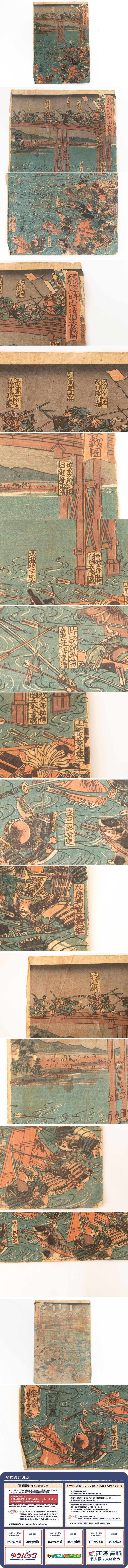 【中古】M▽歌川芳虎 寿永三年正月十六日 宇治川大合戦圖 木版画 浮世絵 錦絵 1843年 (307)