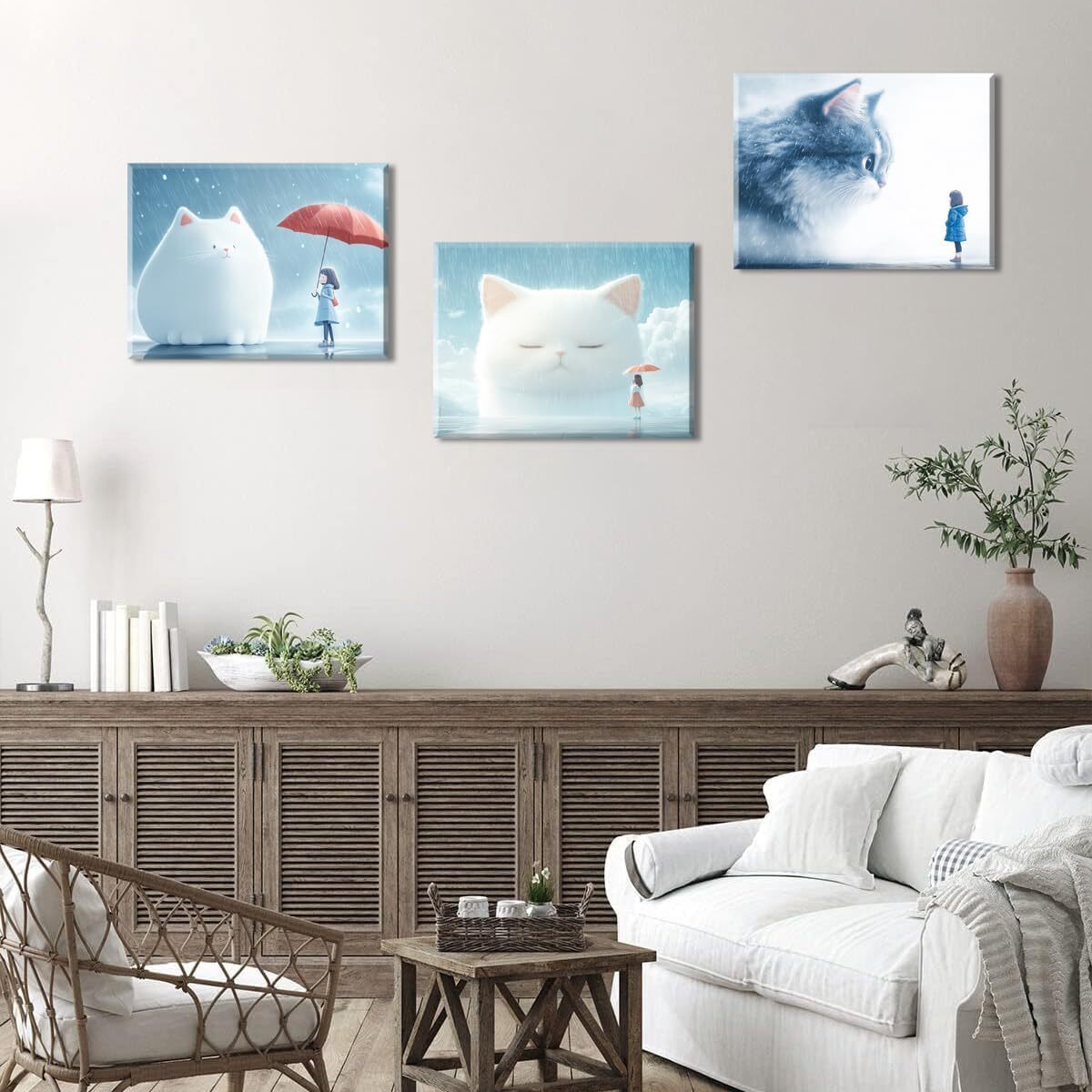 ◆可愛らしい猫と女の子が描かれており、それぞれ異なるスタイルと雰囲気を持ち、インテリアにアクセントを加えたい方におすすめです。