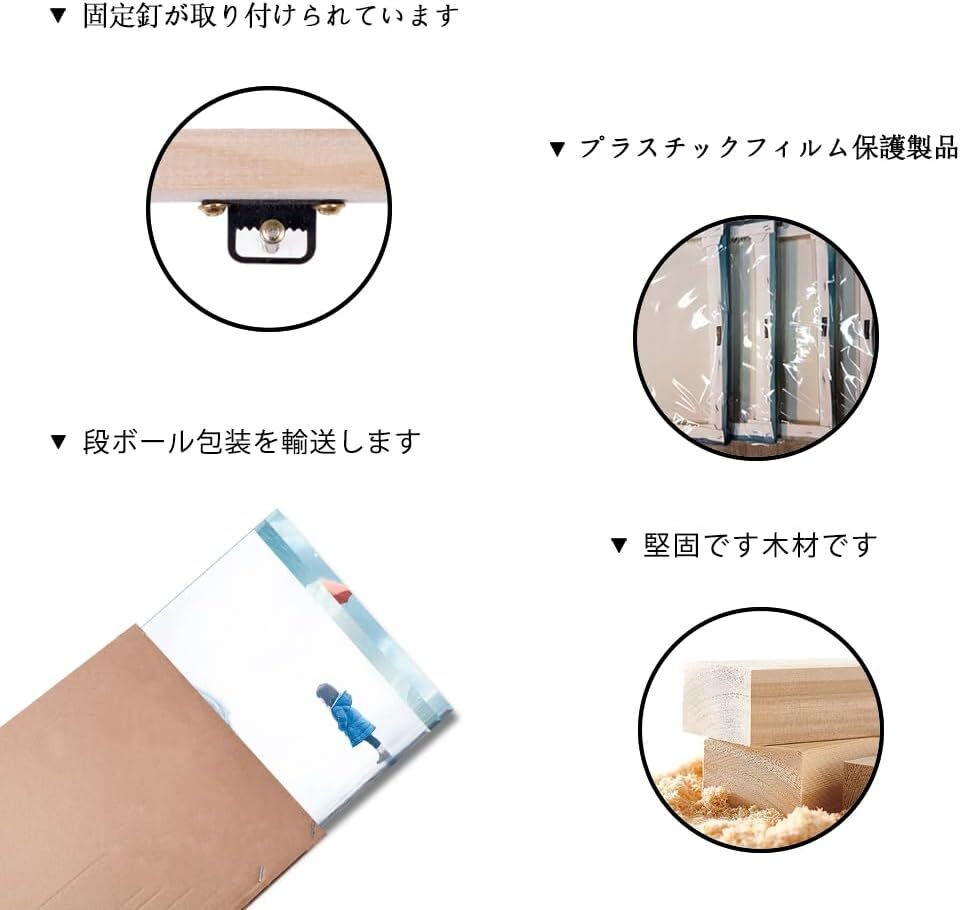 ◆木枠には金属フックがあるので、釘や傷のない釘を用意するだけでサスペンションができます。