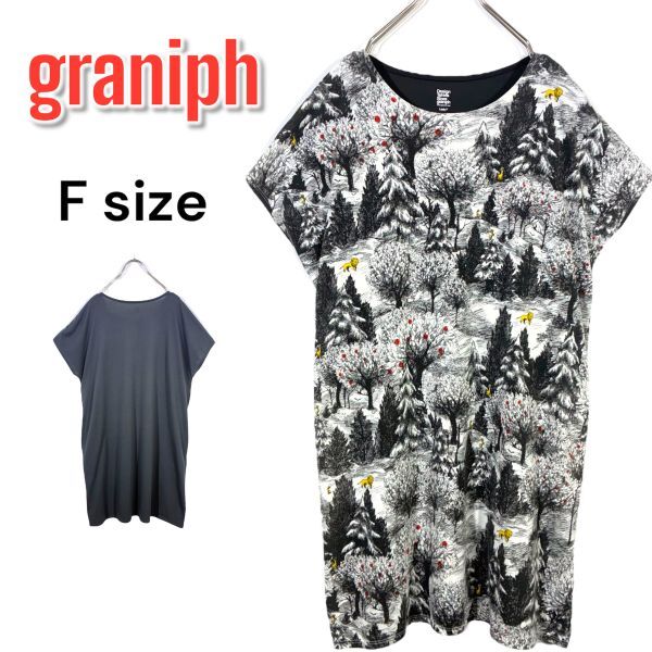 graniph グラニフ チュニック ワンピース フリーサイズ ノースリーブ 総柄 グレー