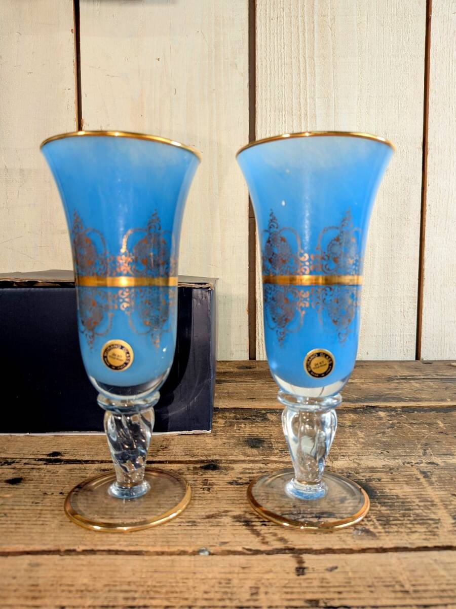 今回ご紹介の商品は、イタリア ムラーノグラス 24金ペイント シャンパングラス 2本セットになります。