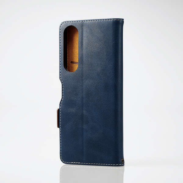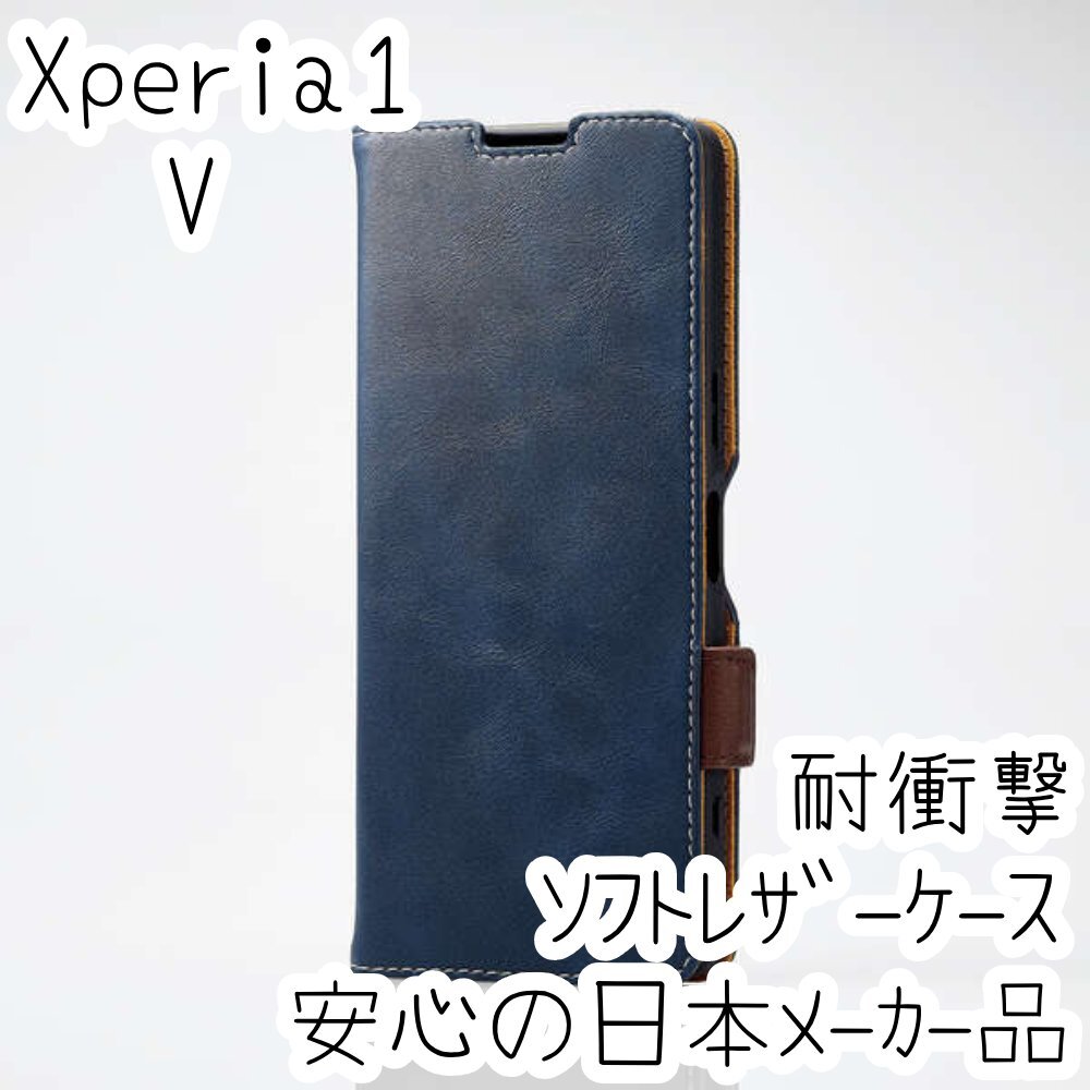 Xperia 1 V 手帳型ケース カバー ソフトレザー 耐衝撃 ネイビー マグネット ストラップホール付 磁石付 カードポケット SO-51D SOG10 066