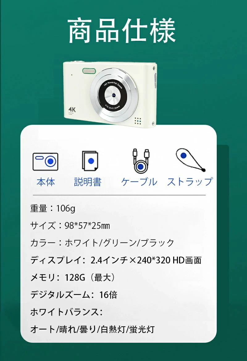デジタルカメラ 4K 4800万画素 キッズカメラ 高画質 レトロ デジタルカメラ 自撮り 16倍ズーム コンパクト 子供カメラ キッズカメラ