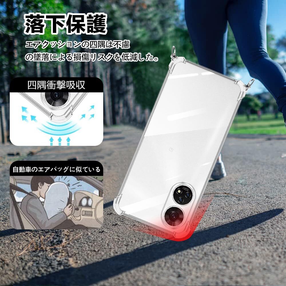 NISIILNG ZTE Anshin Family スマホケース クリア ショルダー ケース TPU 耐衝撃 薄型 軽量 斜めかけ 織りストラップ付き ネックストラップ ショルダー 長さ調整可能 取り外し可能 落下防止 紛失防止
