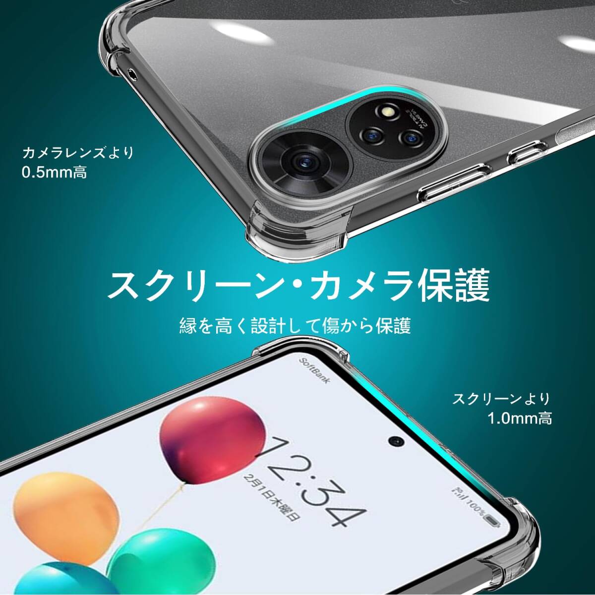 【衝撃吸収】四隅に施したエアクッションの加工で衝撃を吸収します。面と背面カメラ部のフチを高く設計し、液晶画面とカメラレンズをキズから保護します。 スマホを机などの平面に置いた場合に、液晶画面とカメラレンズが接触してできるキズが最小限に抑えられるよう、表側(液晶画面側)は1.0mmの、裏側(背面側)は0.5mmの高低差をつけ、ちゃんと携帯を保護することができます。