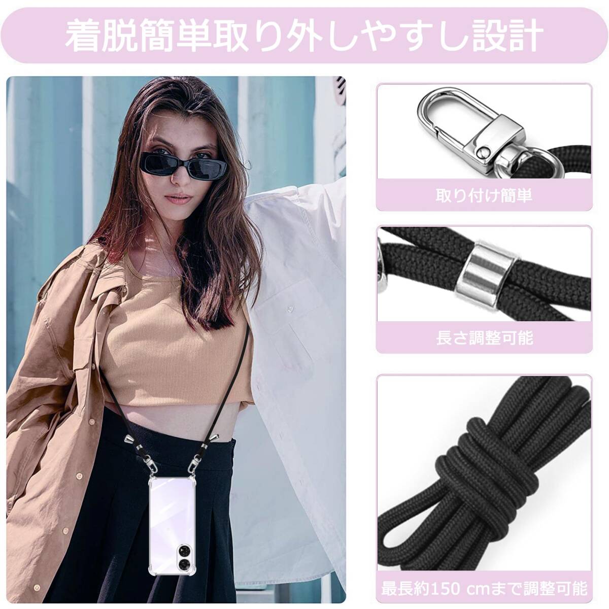 TPU 耐衝撃 ケース 薄型 ショルダー 軽量 斜めかけ クリア 織りストラップ付き スマホケース ネックストラップ Family