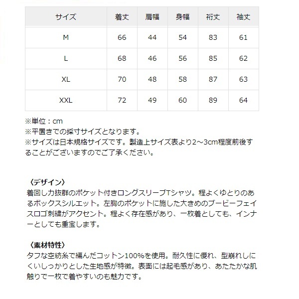 XXL:着丈72 身幅60 肩幅49 袖丈64(cm)
