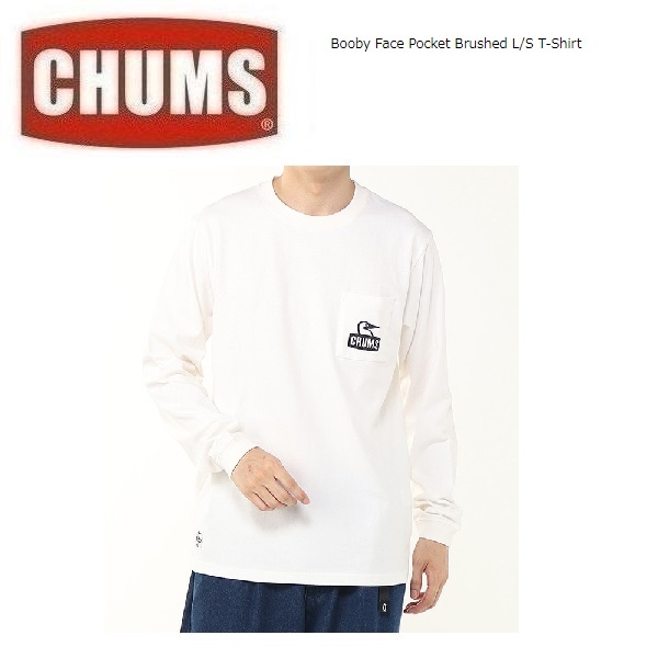 CHUMS チャムス ブービーフェイスポケットブラッシュドロングTシャツ ホワイト XXL CH01-2670 メンズ 長袖 ロンT アウトドア