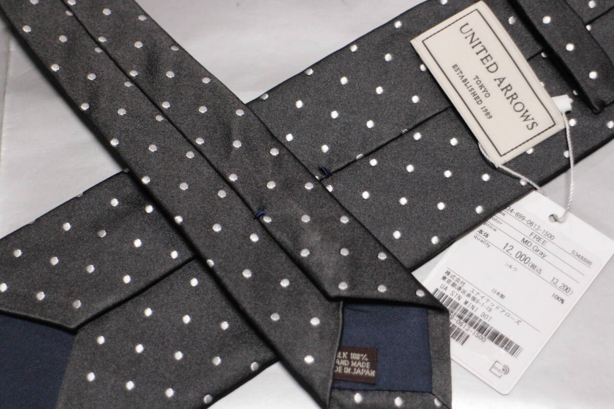 ユナイテッドアローズ新品ネクタイ超シック艶ミディアムグレー*シルバードット高密サテン織ハンドメイド万能柄超人気