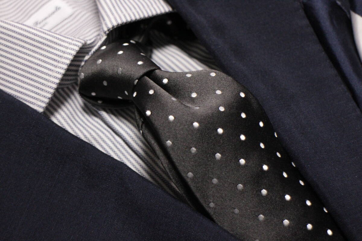 絶妙に映える、エレガントなドットタイに仕上がっています。