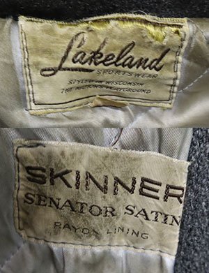 アメリカで買い付けました50-60年代頃のアメリカ製(表記はございませんが)LAKELANDのウールコートで裏地内装はアセテートのグレー系で大型アルミTALON製ZIPです。