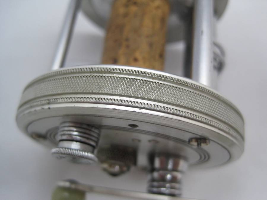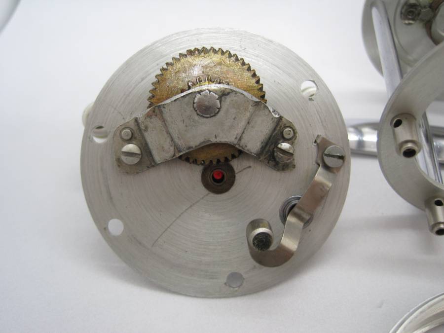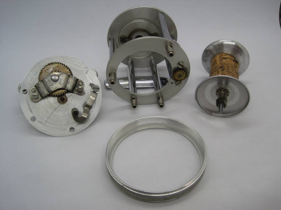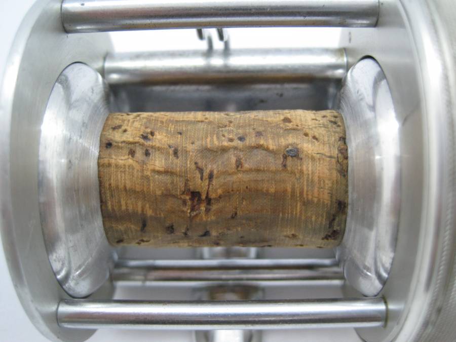 -スプールにはコルク製アーバーが装着されていますが、経年劣化で固着しており、偏心、やや変形もしており、外す為には、コルク自体を破壊しなければなりません。