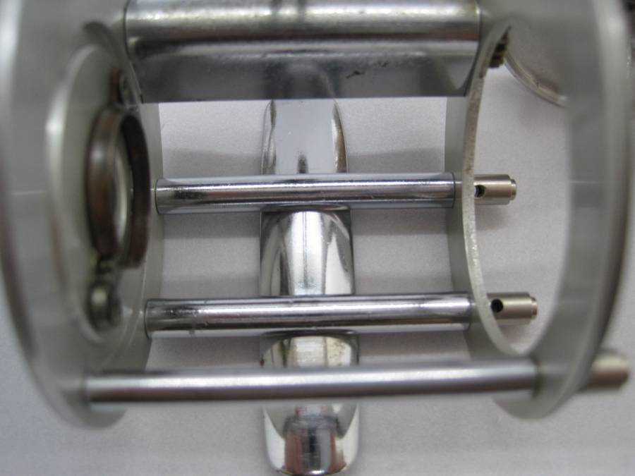 -レベルワインダーのキャリッジスクリュー(ボールねじ)が摩耗していますが、傷や歯の欠け等は無く、レベルワインダーは異音やガタツキ、引っ掛かりも無く、左右スムーズに動作します。スプールの回転も滑らかです。