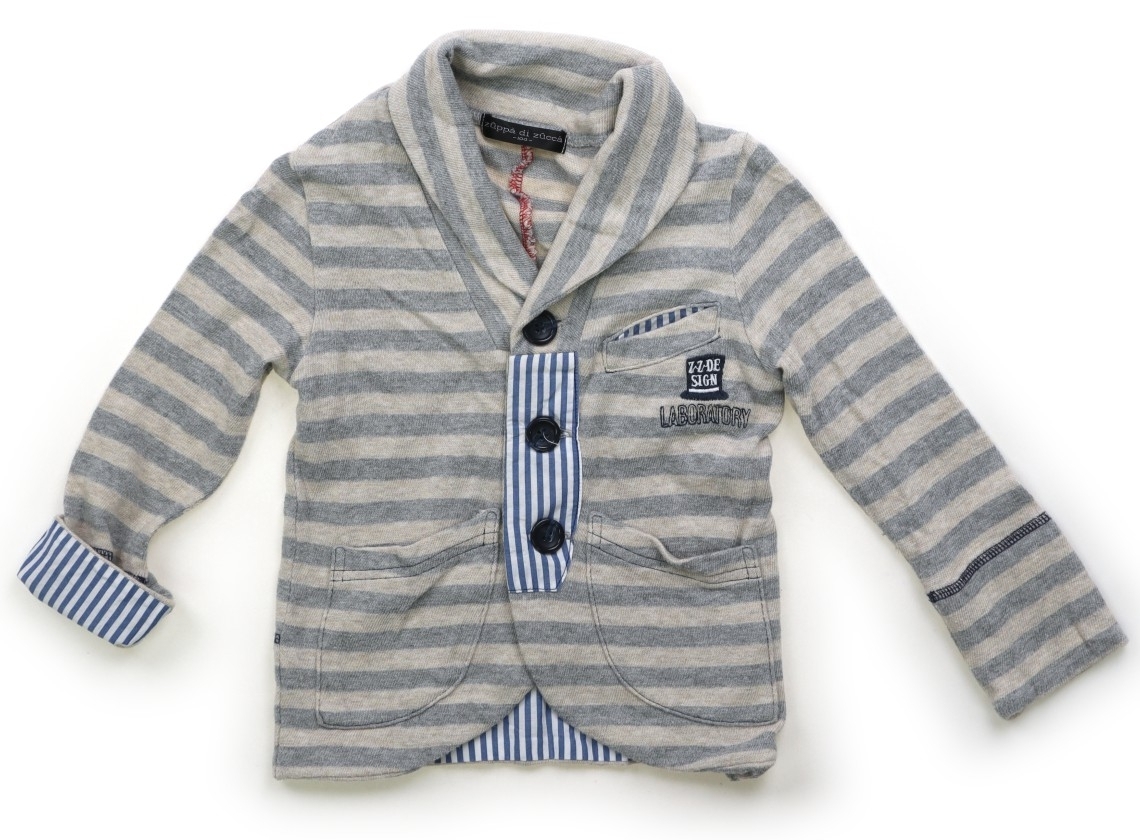 カットソー生地。襟付きでジャケット型のカーディガン。全体に色褪せ、細かい毛玉が複数あります。袖を折り返してお使いいただけます。部分的に型崩れあり。外遊びや洗い替え用にいかがでしょうか?