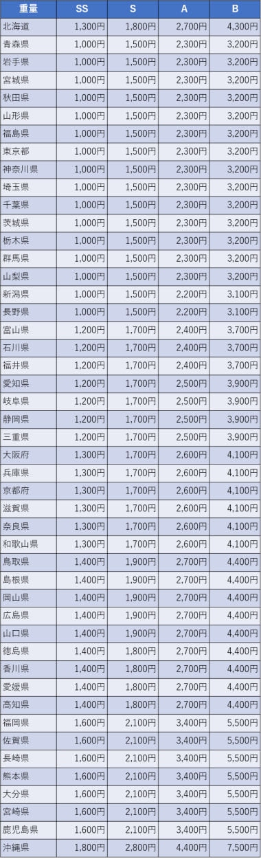 配送方法 | ゆうパックによる発送となります。 この商品の重量カテゴリは「S」ランクです。 送料について詳しくご覧になりたい方はこちらをご覧ください。 ※この送料には、商品の保険料や、梱包手数料も含まれております。 なお、他の発送方法や着払いには対応いたしておりません。 |