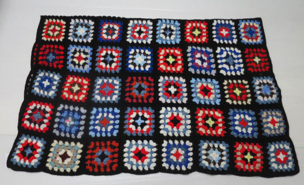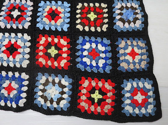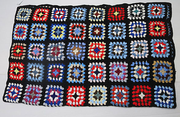 アメリカで買い付けの詳細は不明ですが70年代頃のハンドメイドのウールのラグでベットカーバー、こたつカバー等用途は多種多彩で約16cmの角の組み合わせで画像は2つ折りです。