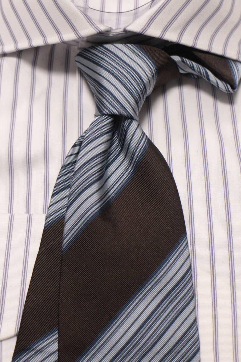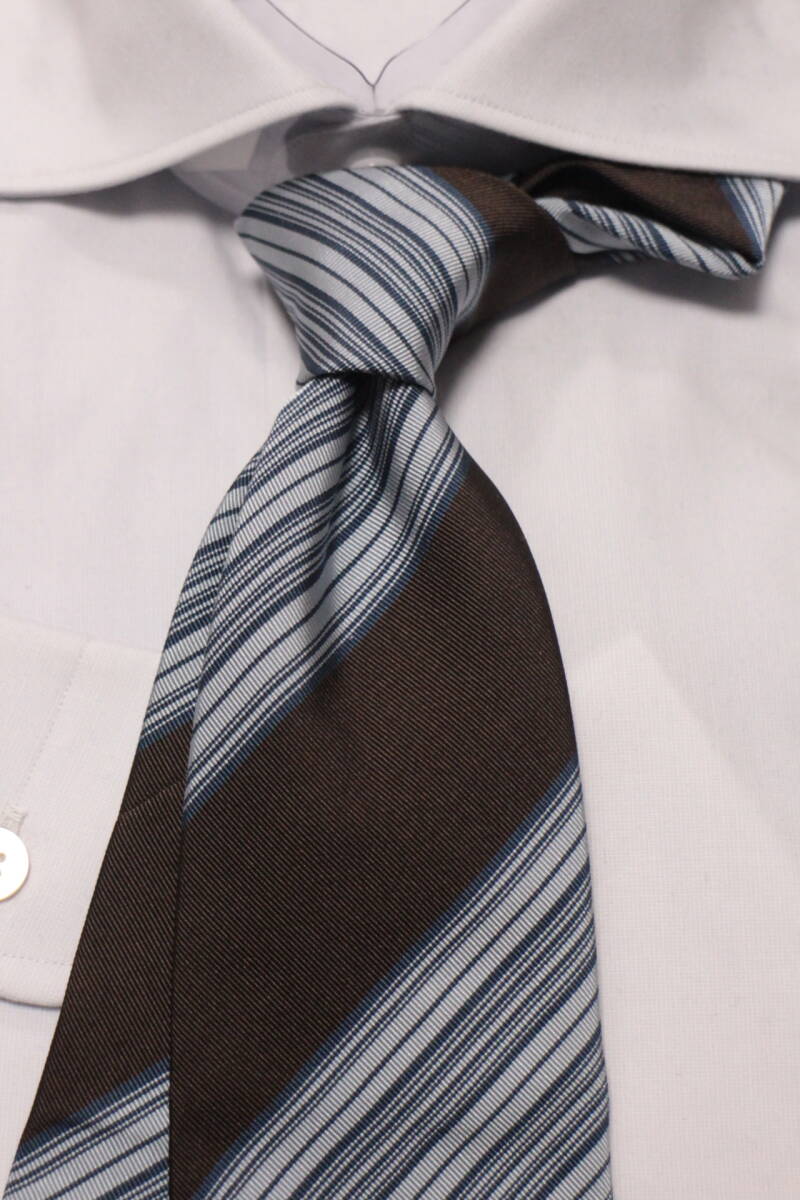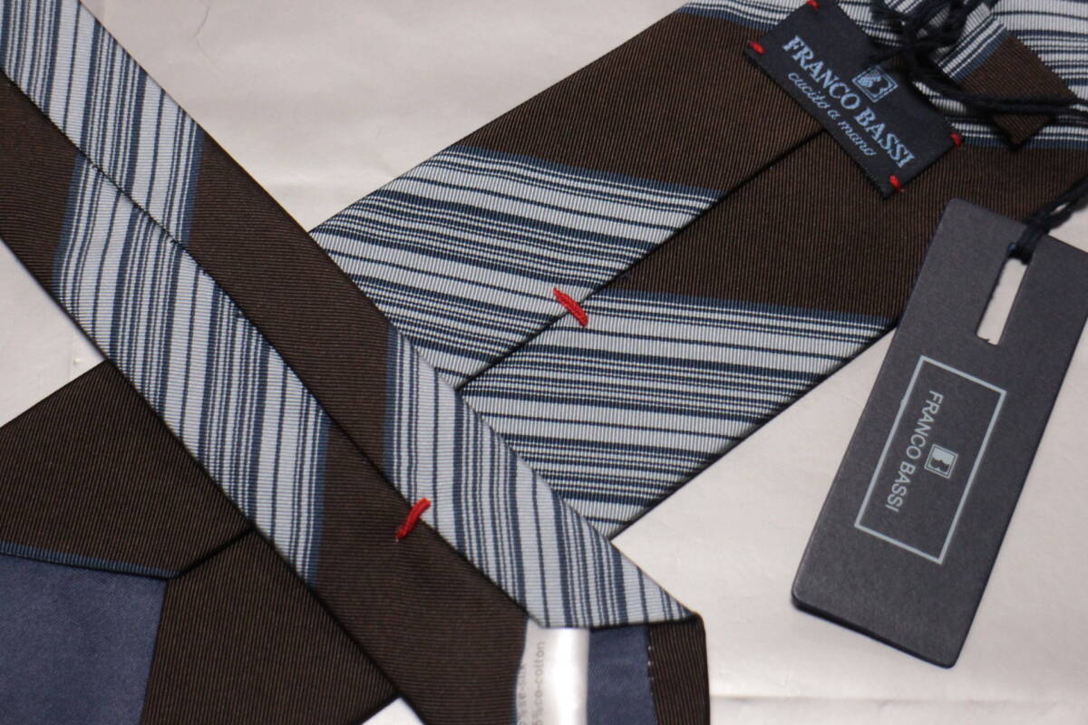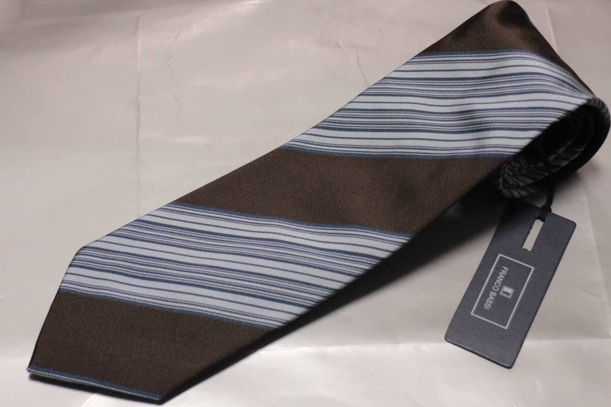 フランコバッシ*阪急別注新品ネクタイ超シック美麗ブラウン*アイスブルー*ネイビーレジメン重厚ツイル織ワイドピッチハンドメイド