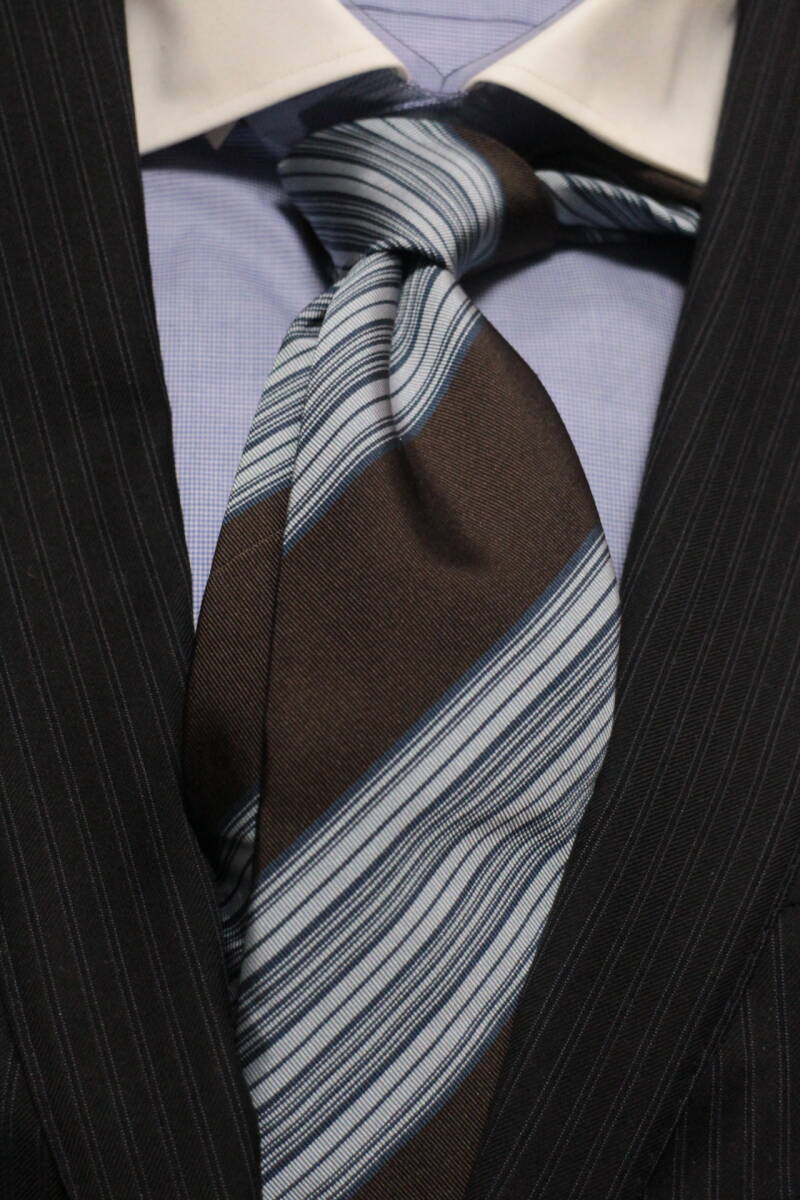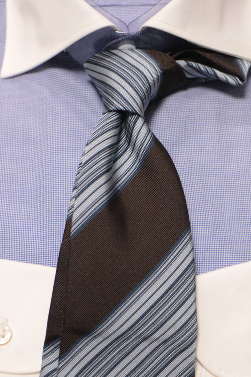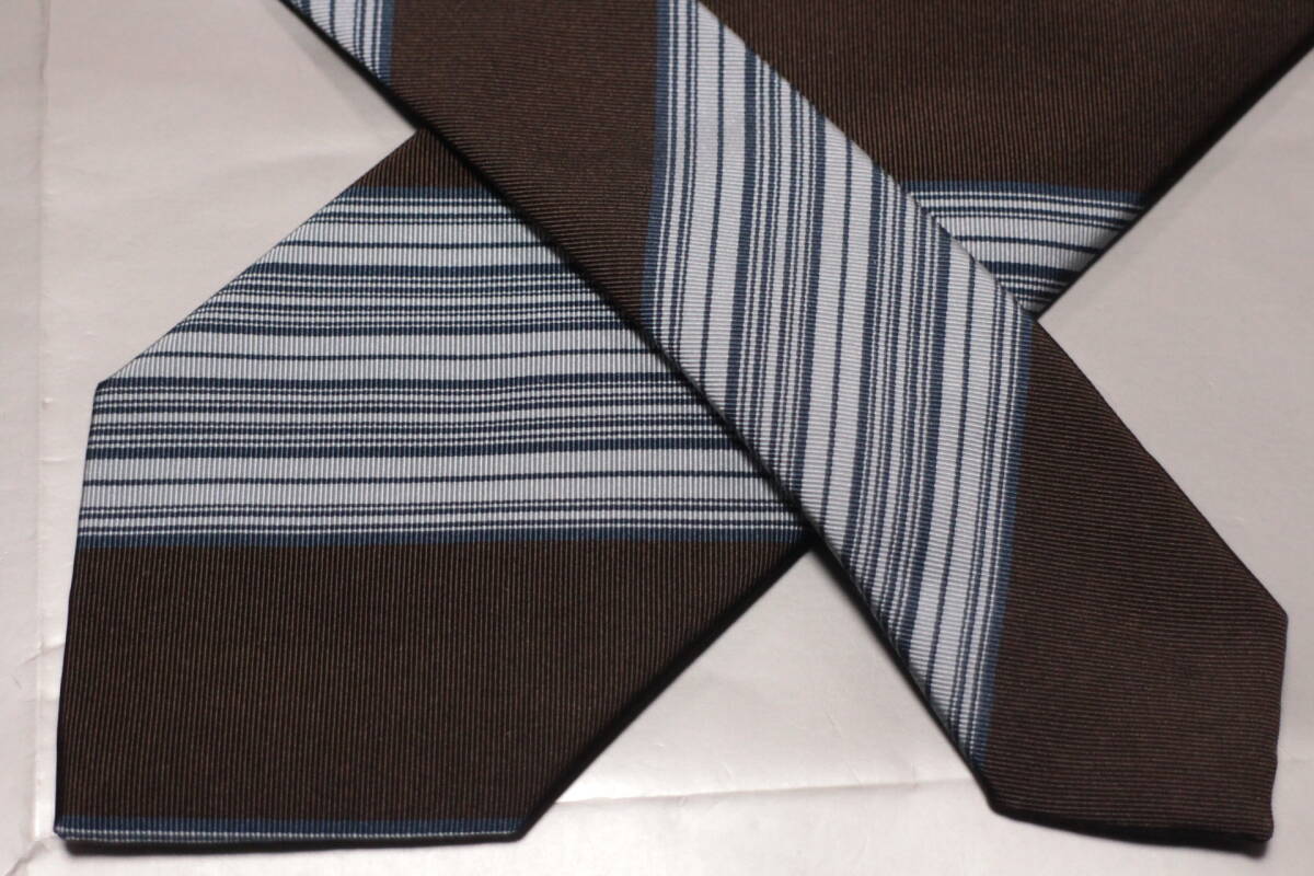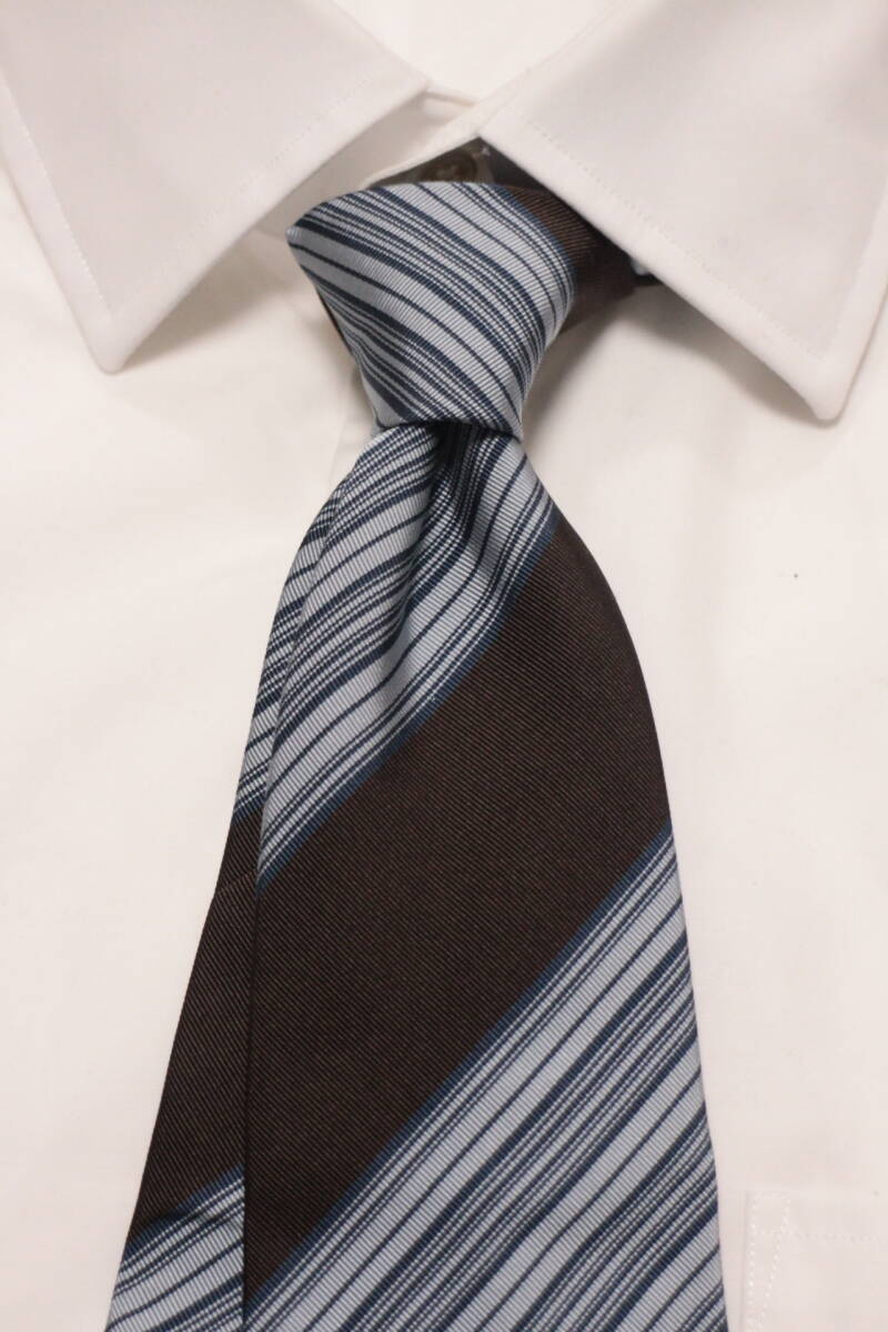 フランコバッシ*阪急別注新品ネクタイ超シック美麗ブラウン*アイスブルー*ネイビーレジメン重厚ツイル織ワイドピッチハンドメイド