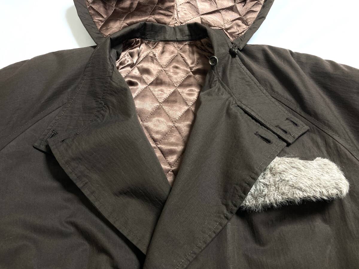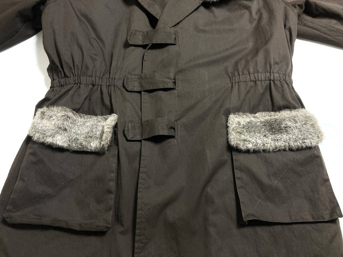 | コメント | 90年代頃のものと思われます。フロントはマジックテープ留め、ラグラン袖、ポケットは左ムネと両スソ、内側の左ムネに付いたデザインになります。ウエストの辺りにゴム付き。フード部分はボタンで取り外し可能。裏側はキルティング地。ポケットのフラップ部分にフェイクファーが使用されていてデザイン的にアクセントになっています。他にも色々なブランドのコートや、その他いろいろなアイテムを出品しています。よろしければご覧ください。 |