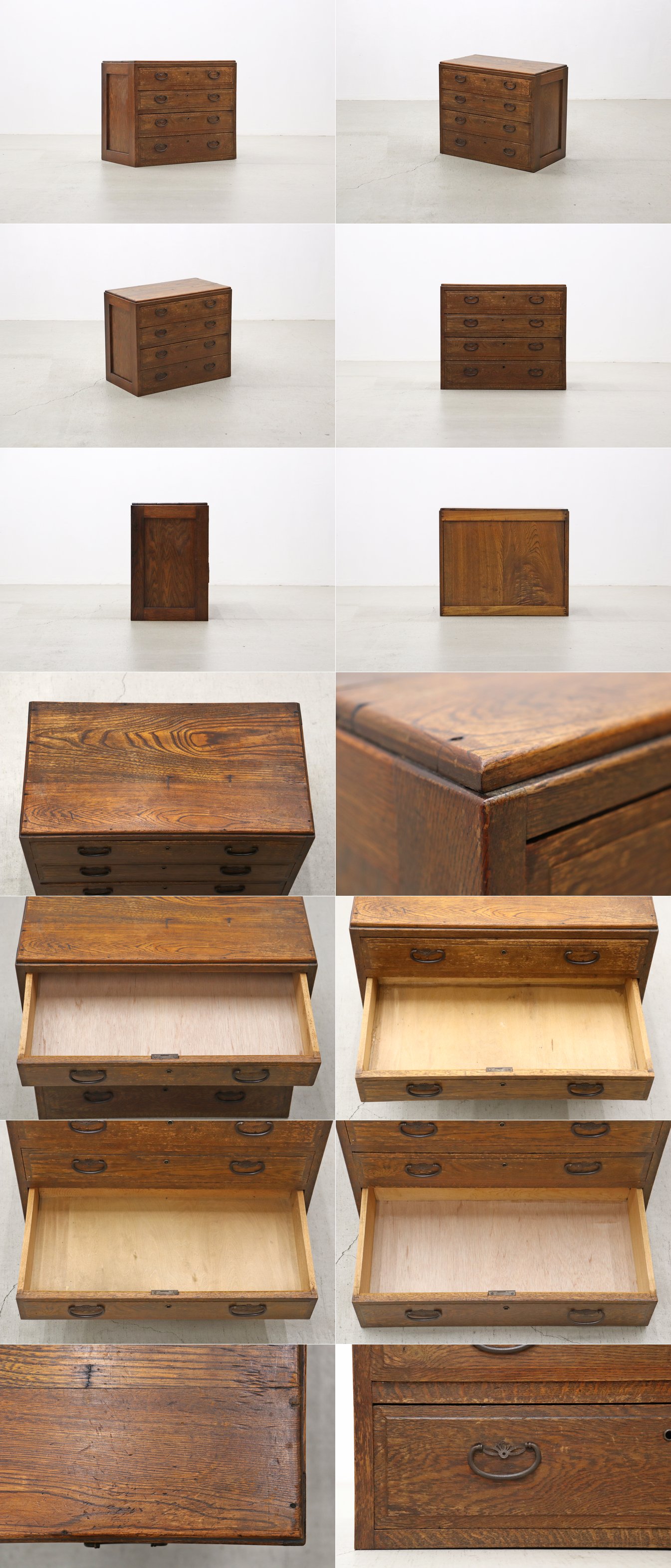 レトロ 無垢材 引き出し4杯 小引き出し レターケース 収納 キャビネット
