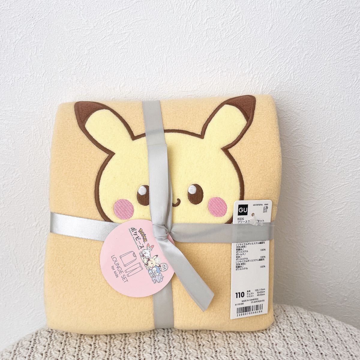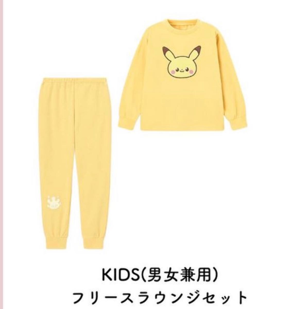 新品ジーユーKIDS(男女兼用)フリースラウンジセット(長袖&ロングパンツ) ポケピースGUルームウェア パジャマ110サイズ キッズ ピカチュウ