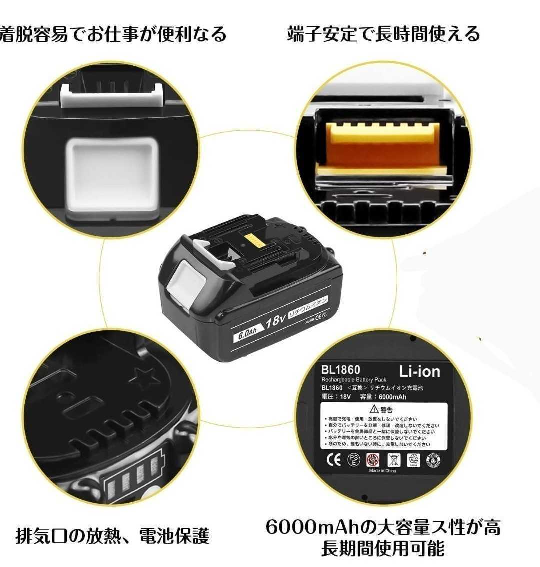 マキタバッテリー6.0Ah 18V BL1860B 大容量 残量表示 互換バッテリーBL1830BL1840BL1850BL1860B 世界中で大人気 新品未使用