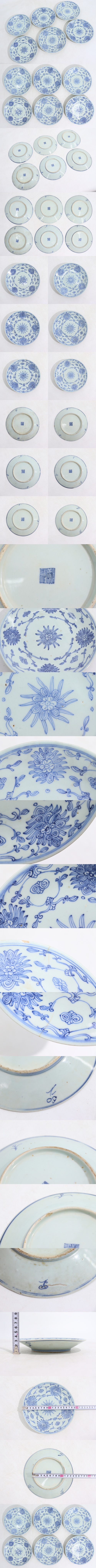 | 大清嘉慶年製 銘 染付 線描 草花紋 皿 六客 / 清 嘉慶 中国美術 新渡 銘々皿 線描き 茶器 煎茶道具 .G935 |
