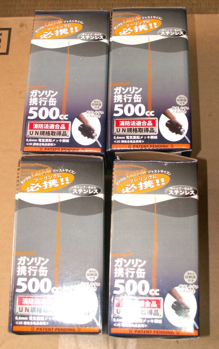 オートバイ ガソリン 500CC 携行缶 消防法適合品  BT-500R 4個 収納袋 給油ノズル付  ツーリング 新品