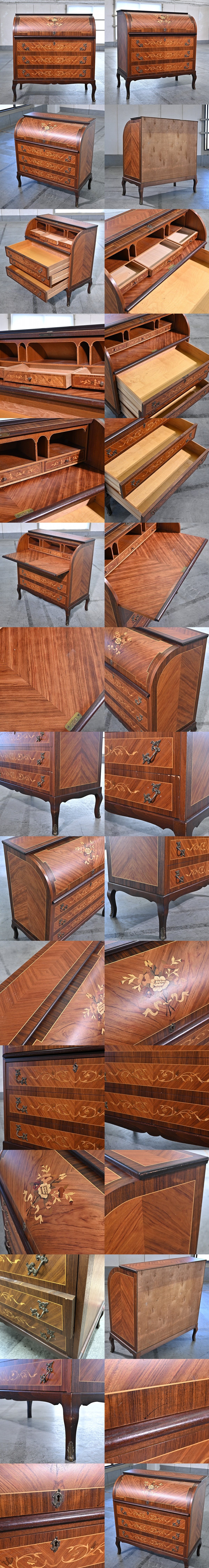 北欧スウェーデン MIS社 ライティングビューロー ローズウッド材 木象嵌 真鍮 猫脚 チェスト 収納 引き出し 3段 3杯 サイドボード