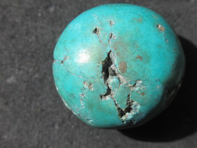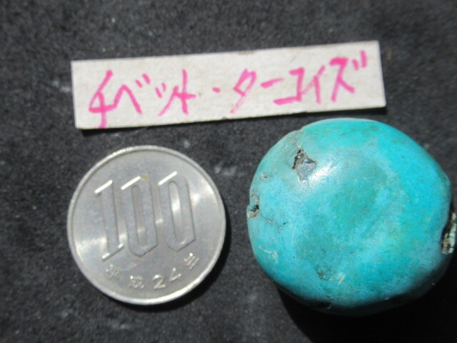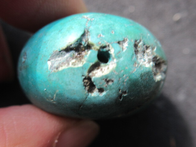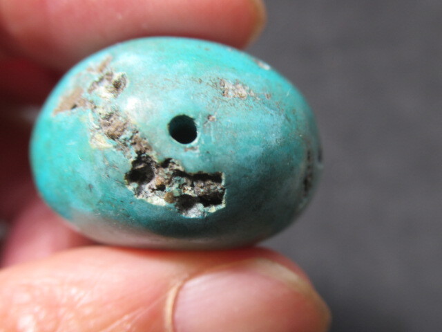 使い込まれて母岩部分が虫喰い状に欠落したチベタンターコイズですが使用に耐える状態です。サイズ27/25/18mm、重さ14,3g。送料無料。