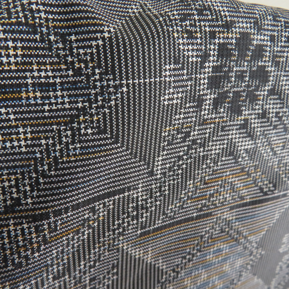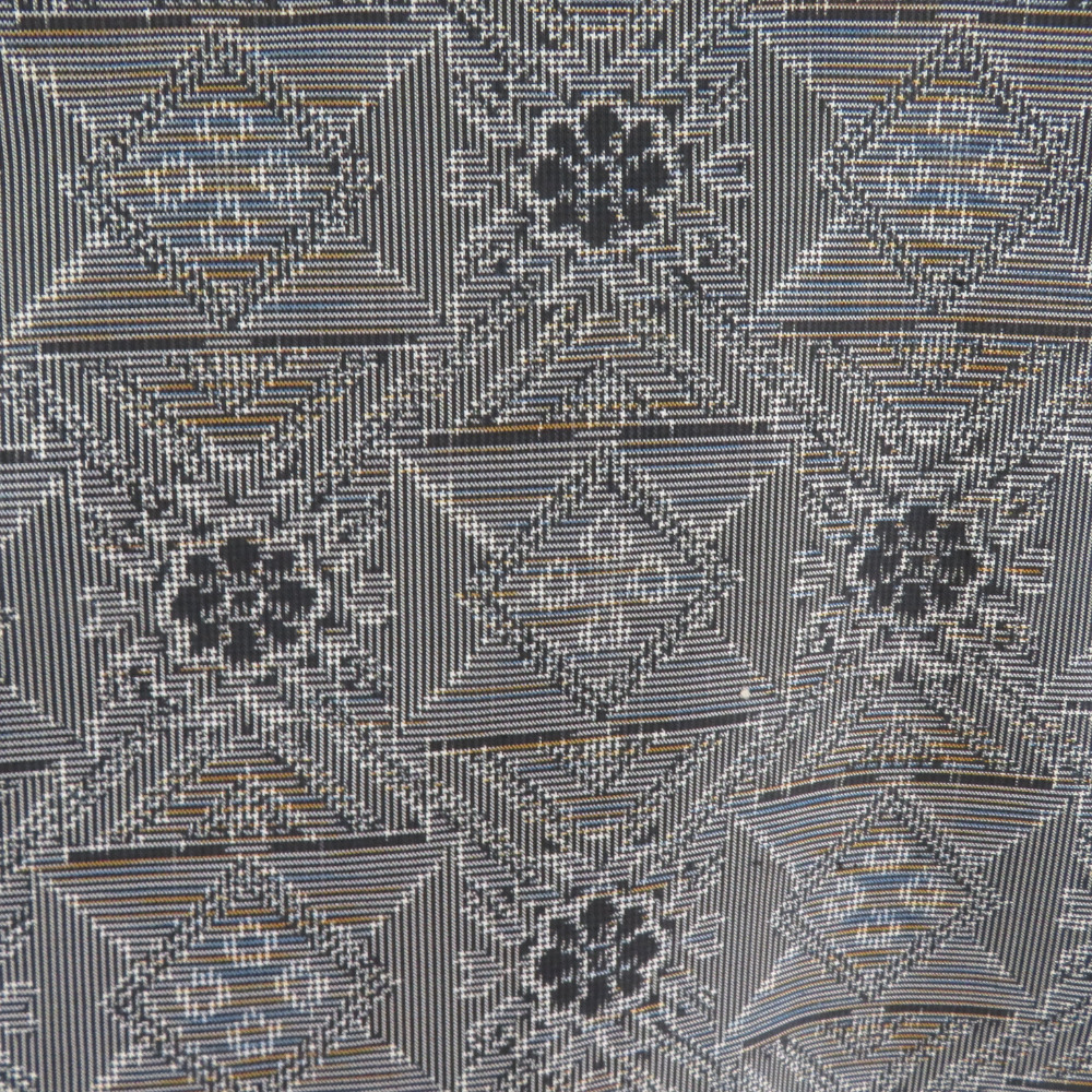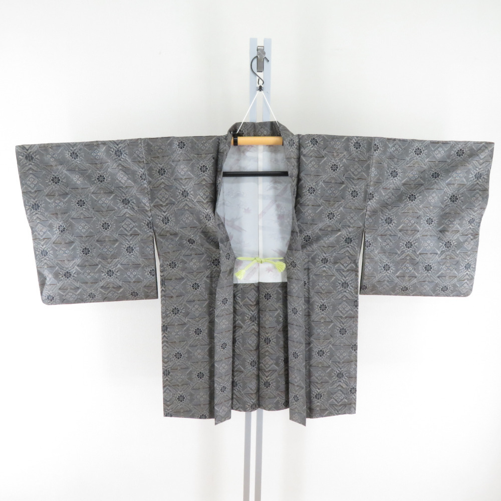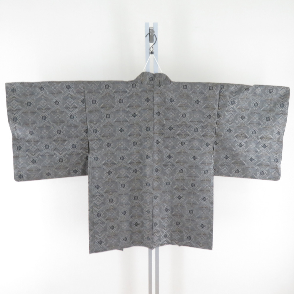| 紬 着物 紬 アンサンブル 羽織付 幾何学文様 袷 広衿 灰色 正絹 カジュアル 仕立て上がり 身丈154cm |
