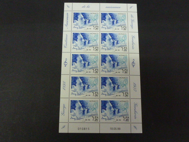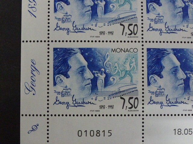 モナコ切手 作曲家 ジョージ・ガーシュイン 生誕100年 1998年シート