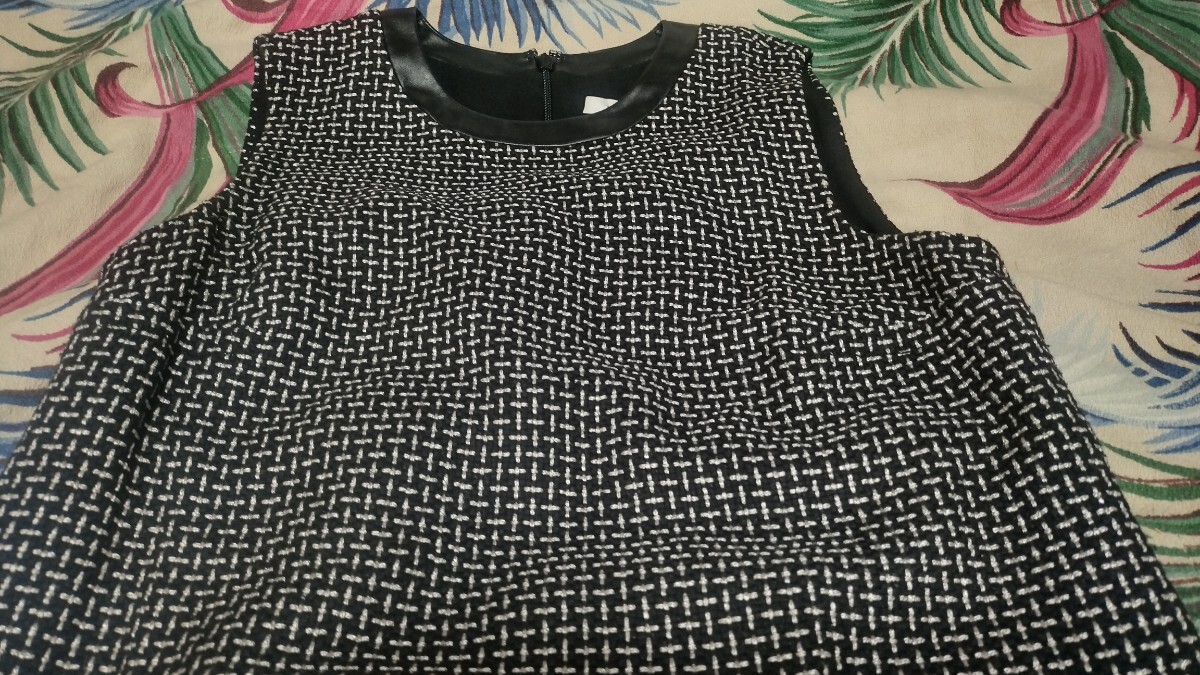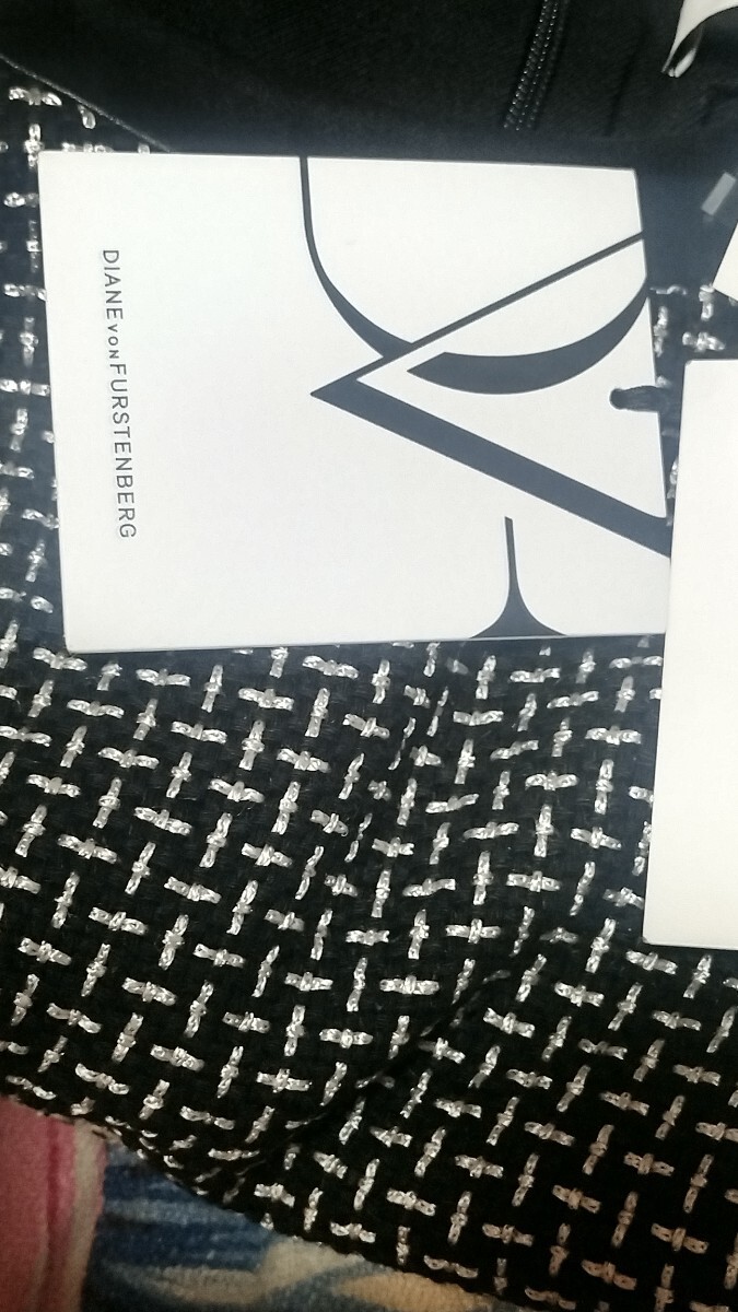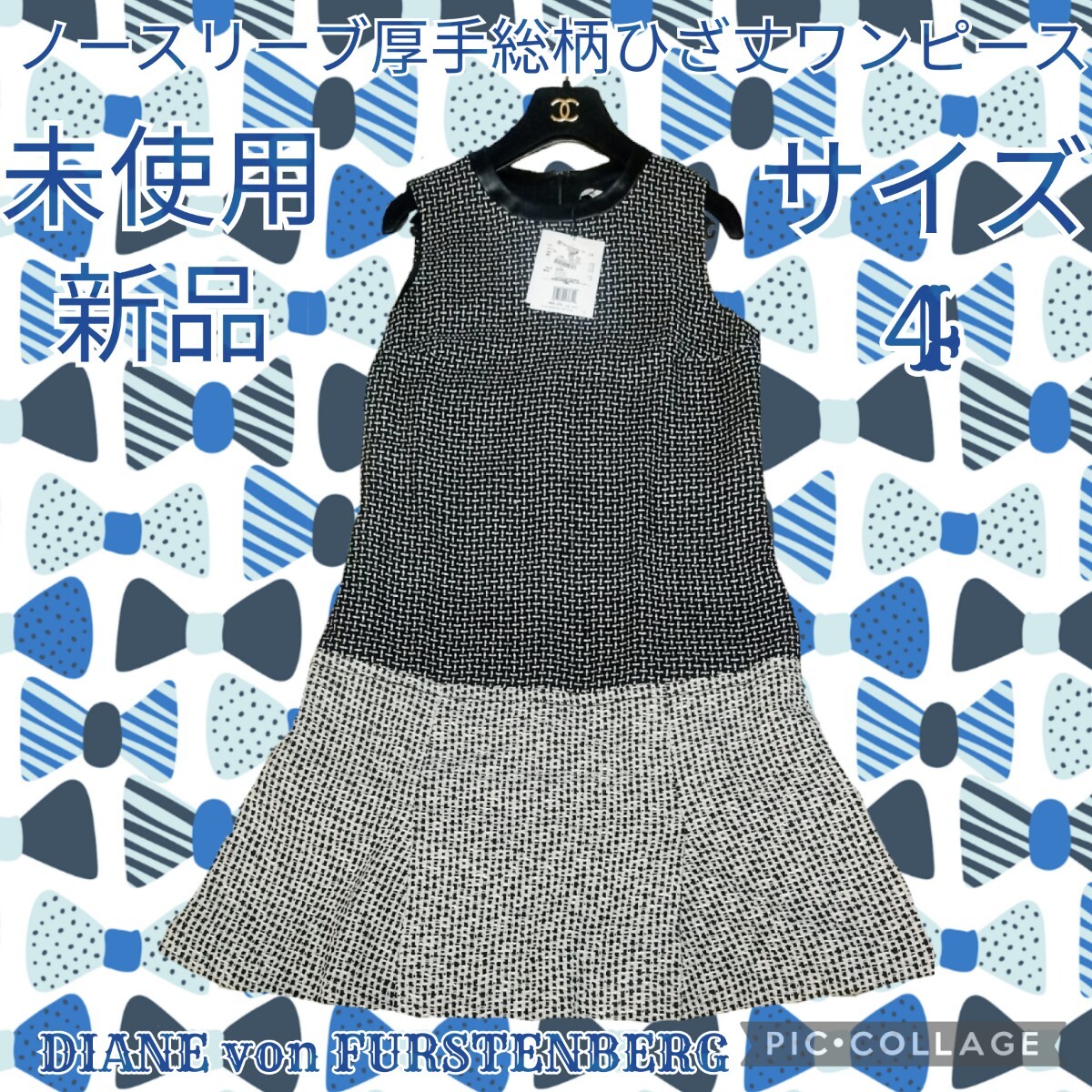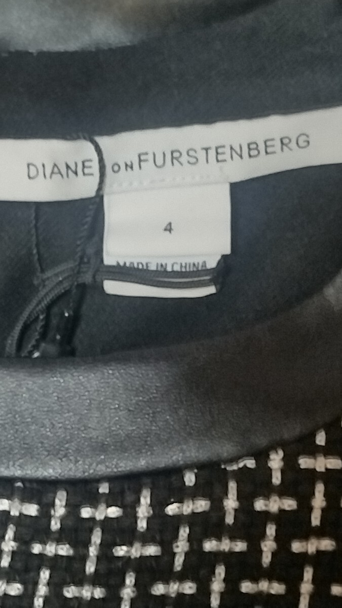 DIANE von FURSTENBERGのノースリーブ厚手合皮襟総柄バイカラーひざ丈フレアワンピースになります。