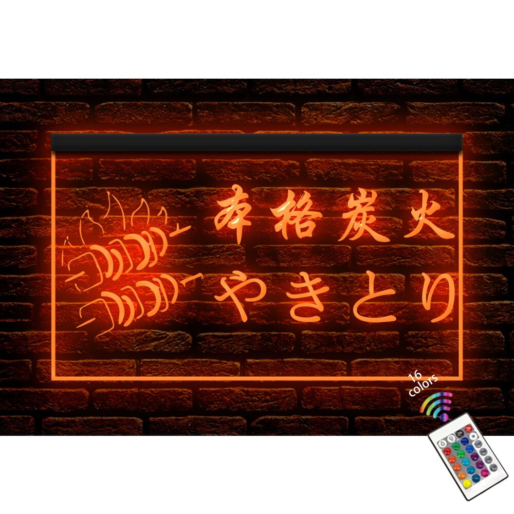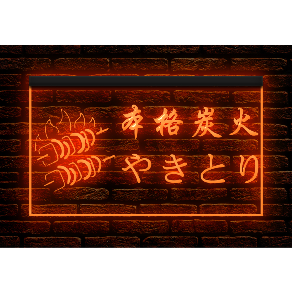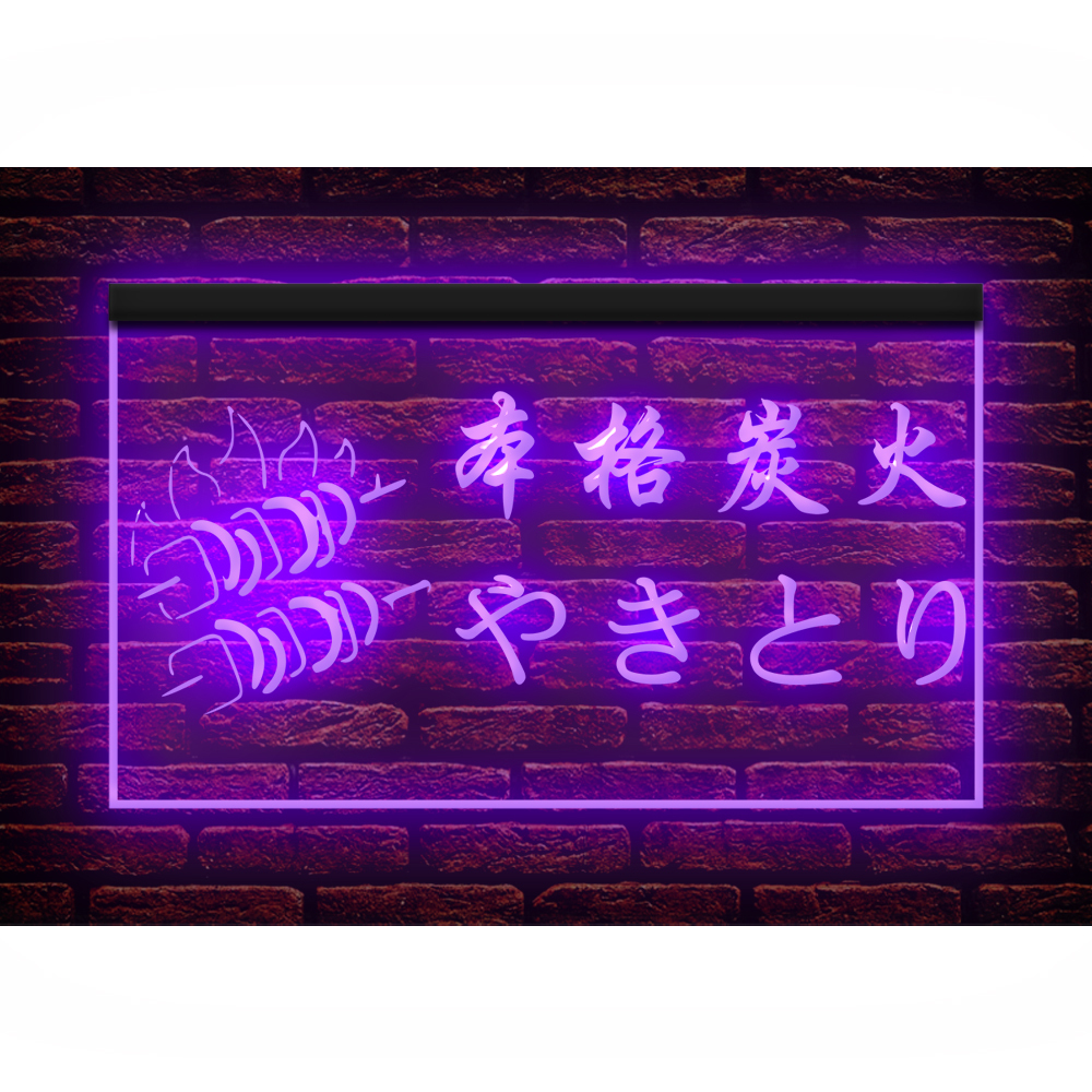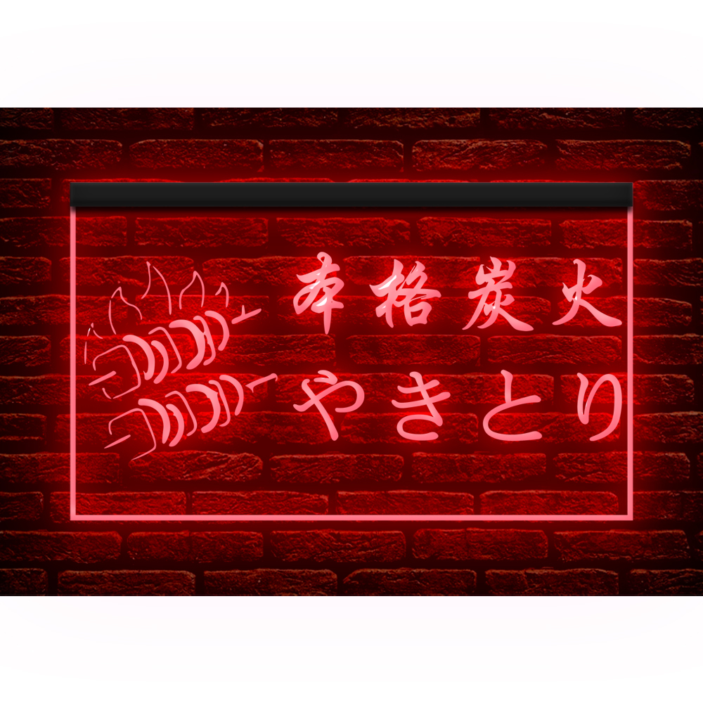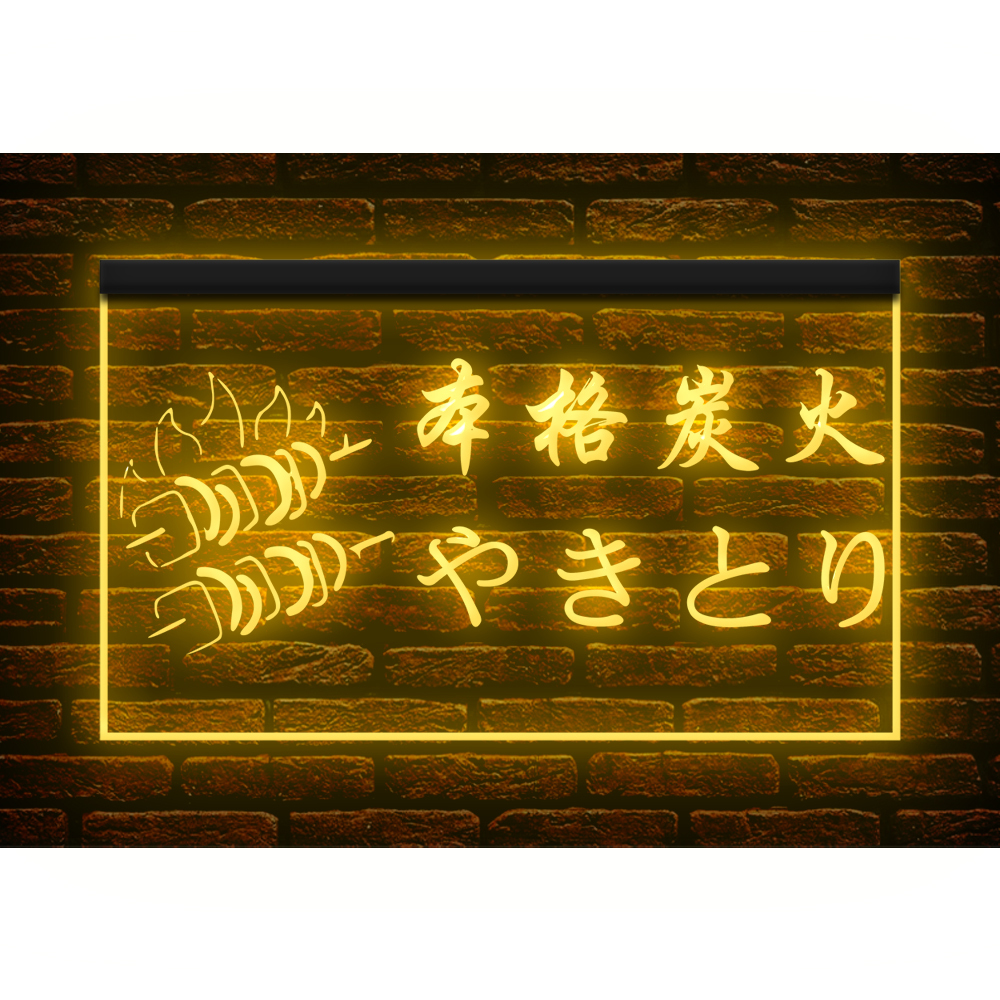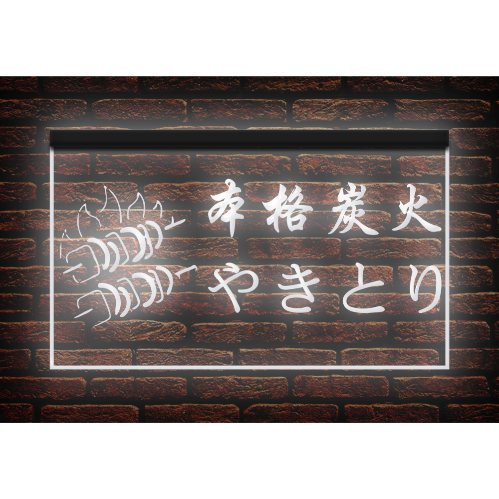 【オリジナルデザイン対応】260173 // LED ネオンサイン 本格炭火 やきとり 営業中 オープン看板■サイズ(約):W400mm x H300mm