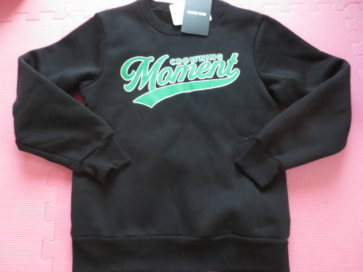 新品 140 裏起毛 長袖トレーナー 黒 ユニフォーム風筆記体ロゴプリント 小学生 男の子 冬物 スウェットシャツ プルオーバー 130〜 送料無料