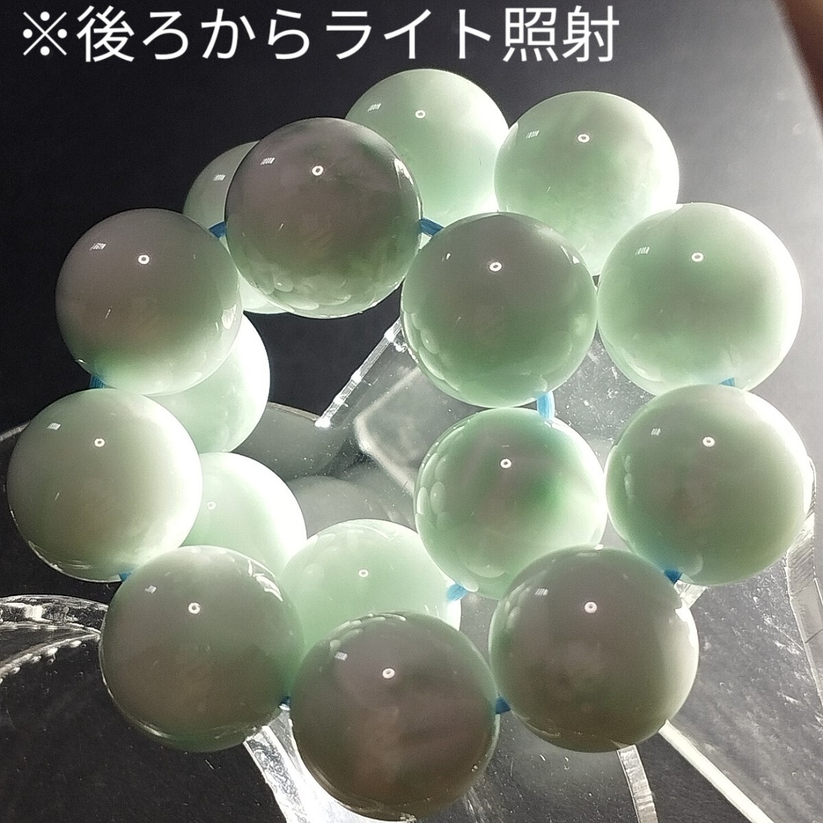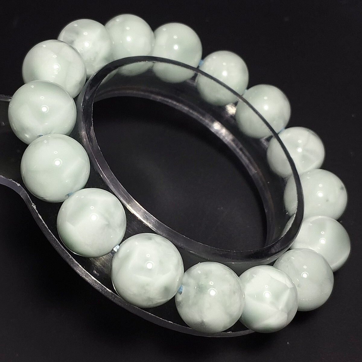 確かに天然石として見ても違和感はなく、グリーンラリマーとして見たとしても淡いグリーンの亀模様やシャトヤンシー、透け感や黒点まであったりと非常によくできた偽物だなと思いました。