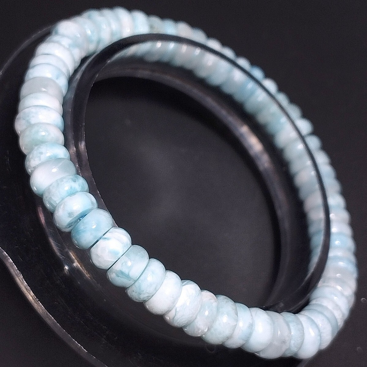 #ラリマー #ブルーペクトライト #ボタンビーズ #ボタンカット #ロンデル #ブレスレット