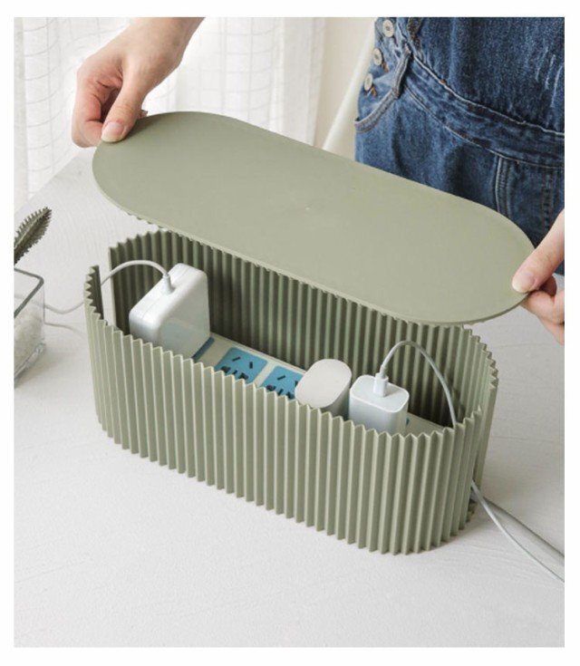 配線収納 ケーブルボックス スリム タップ収納 タップボックス コードボックス ボックス ケーブル隠し 電源タップ 配線カバー グリーン