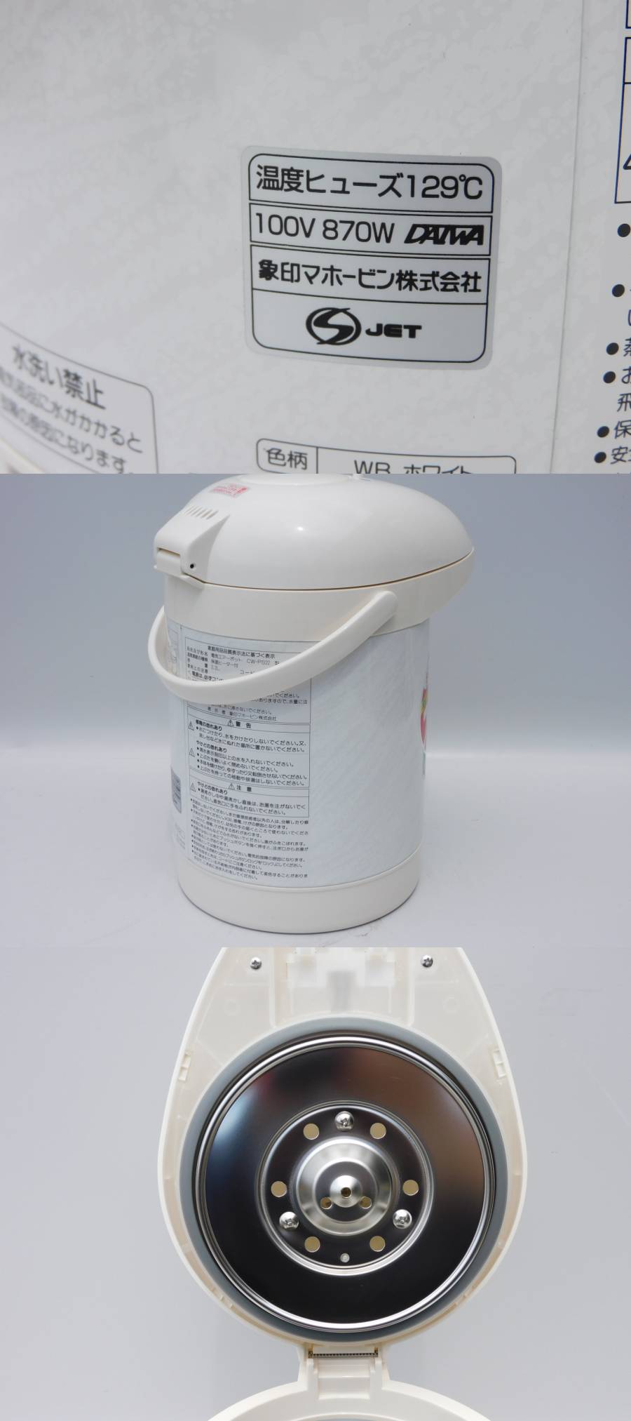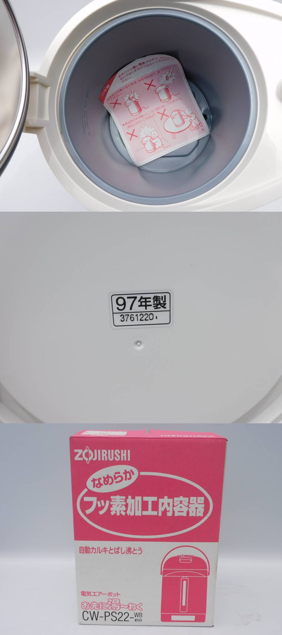 | 【メーカー/商品名】 象印 電気ポット CE-PS22 2.2L 自動カルキ飛ばし沸騰 ※97年 【商品の状態】 新品同様 古いが1度も使っておらず美品 ※未使用品で動作する物に関しては動作保証になります。 97年製ですが購入してから1度も使わず置いていたようで状態は新品同様です。ピカピカです。 保管中の環境での劣化、流通上の擦れなどはあるとお考えください。 写真で極力お伝えするようにはしておりますが、映りにくい傷や汚れもあるとお考え下さい。 付属品は基本的には写っている物以外は無しです(背景や台車は一切関係なし)。 ※神経質な方は入札をご遠慮ください! 使用に支障が無いような後ろや裏面の汚れが気になる方は入札をご遠慮ください。 またシビアな新規の方も入札をご遠慮ください。 【送料】 送料無料 (恐縮ですが沖縄や離島は発送不可です) 北海道はプラス料金(+500円)がかかります。 超小物サイズは定形外郵便、宅急便サイズは佐川急便、大型家電はヤマトのらくらく家財便になります。 集荷は毎日13時頃に佐川が来ます。それまでに入金確認ができればその日に、13時以降は翌日になります。 【当方へのお支払い(※分割払い可)】 落札代金+消費税+送料 領収書の発行もご依頼があれば発行致します。代引きは不可です。 【分割払いの場合】 当方は「ストア」ですので、ヤフオクの分割払いにも対応しております。 分割払いはYahoo!かんたん決済のクレジットカードでの支払いを選択した場合のみ可能です。 お支払回数は3回、6回、10回、15回、20回から選べます。 ※注意※ 個人出品の方への支払いは一括しかございません。分割は出品者が「ストア」の場合のみ可能です。 カード会社によっては分割払いに対応していない会社もあるようです。事前に確認しておいてください。 当方と直接分割のやり取りはできません。またお支払方法の決定後に変更はできません。 その他、詳細を当方へ聞かれてもわかりかねますので、詳しくは下記のページでご確認ください。 ※分割払いの詳細は詳細1、詳細2 からご確認下さい。 【直接引取の場合】 直接引き取りも対応致します 日曜、祝日以外の9時半から17時の間でお願いします。遅くなる場合は事前にお伝え下されば合わせるようにはします。 パワーゲート車がありますので重たい物も積込みは可能です。フォークリフトはありません。 当日現金払いでも大丈夫です。 【連絡事項】 (注)恐縮ですが、到着して2週間経ってからのクレーム等の対応は一切お受けできません。 2週間経つと故障しても、破損していても一切対応できません。その間どのような環境や扱い方をしたか分からないですし、こちらとしても完全に区切りを付けないと終わらないからです。 到着後、早急に動作確認や状態のチェックをお願いいたします。 ※何かございましたら評価を入れる前に連絡ください。対応はさせて頂きますので。もし悪い評価を先に入れられた場合、もうそこで終了と判断し対応は一切できませんので、お願い致します。 |