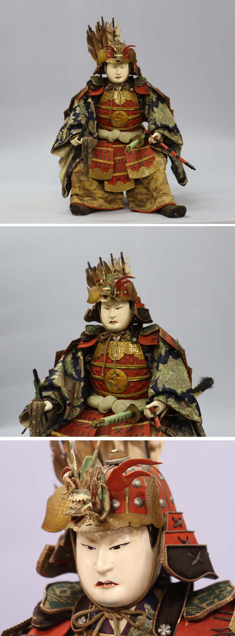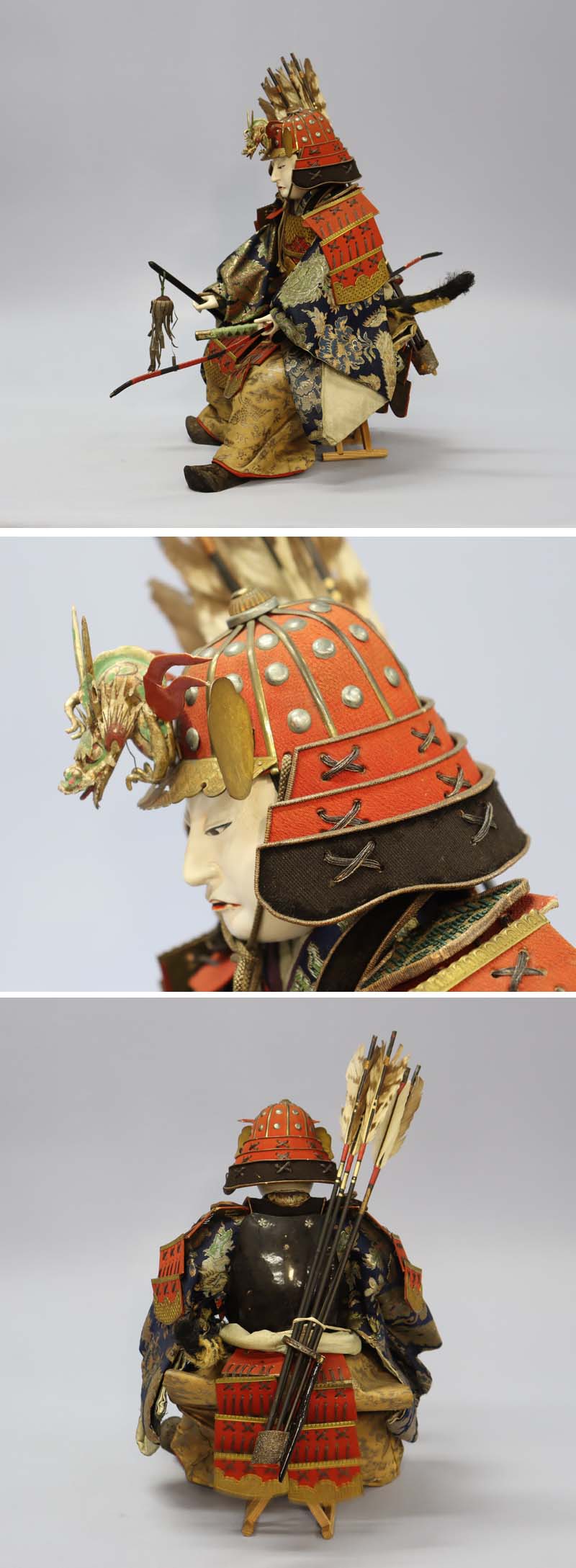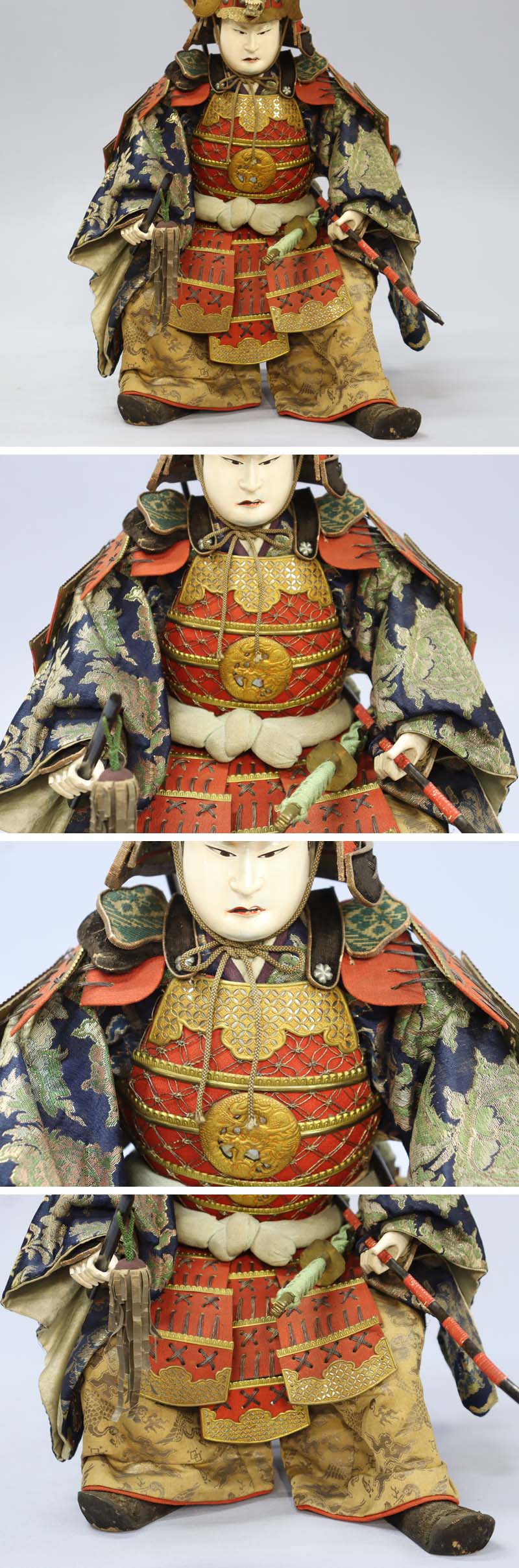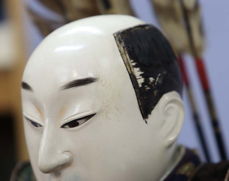 江戸時代(1750-1780年頃)の源義経の五月人形です。目は描き目。
