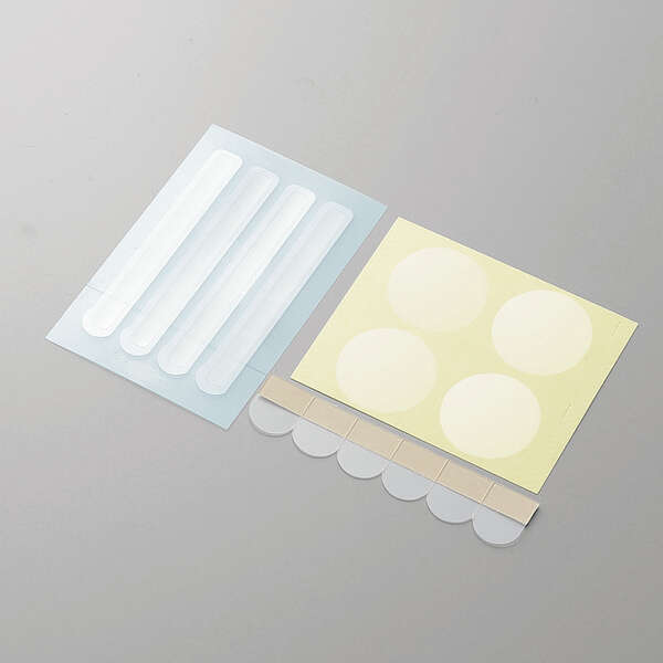 | ●お好みの貼り方を選べるように、 両面シール(モニター貼りシール)、丸シール(フレーム貼りタイプ)、スライド用シールの 3種類の透明貼り付けシールが付属しています | |