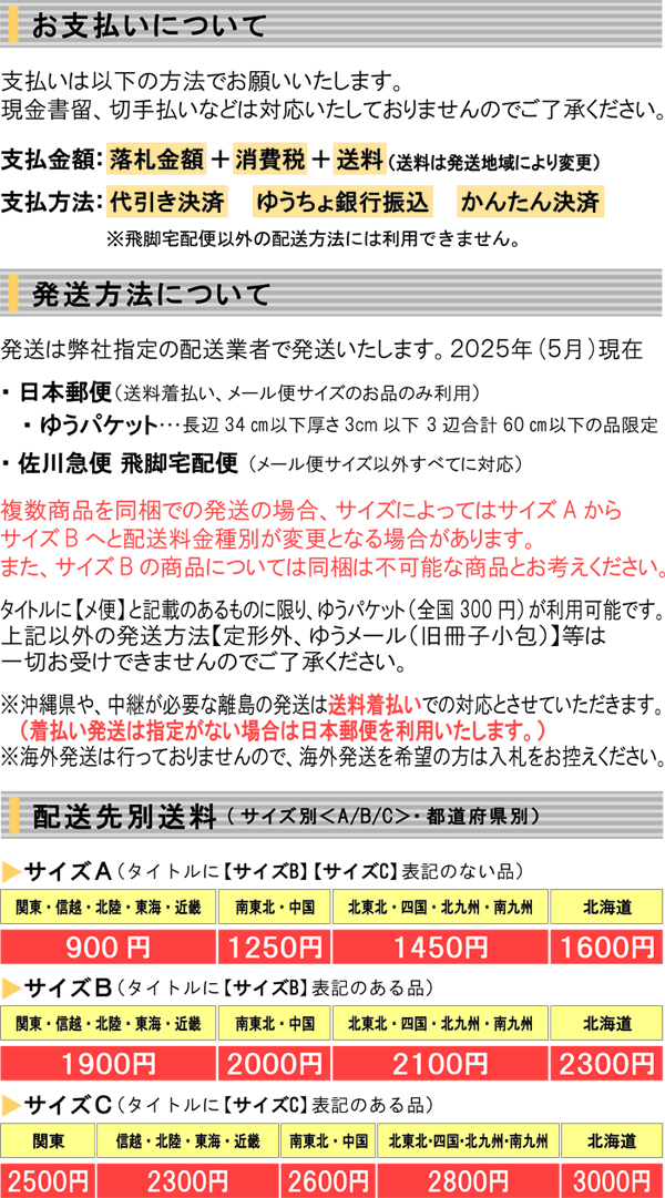 Ⅲ.一旦成功中标,您必须全额支付该拍品(成交价+消费税+银行转账费+日本邮费+代购费)。