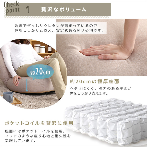 頭部と首をしっかり支えるリクライニング座椅子!ボリュームのある厚みが特徴で座っていても体への負担がかかりにくい!14段階のリクライニングギアが調整可能なので、お好みの位置に設定できます。フルフラットにすれば、お昼寝をするのにもピッタリ!