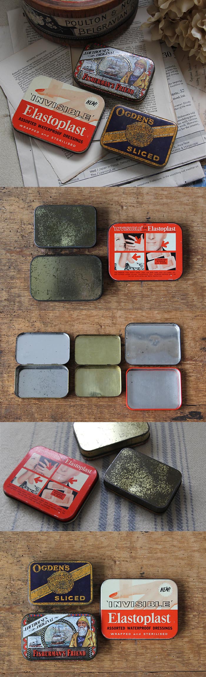 イギリスから直輸入した古いティン /TIN缶3個セット。蓋の開閉スムーズに可能。プリントが素敵です。