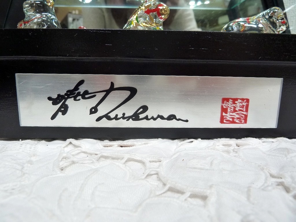 (☆BM)【感謝特別価格】新倉晴比古/十二干支 まほろばの絆 クリスタルガラス 飾り台付き 高さ62㎝ オブジェ ミニチュア 玻璃 水晶