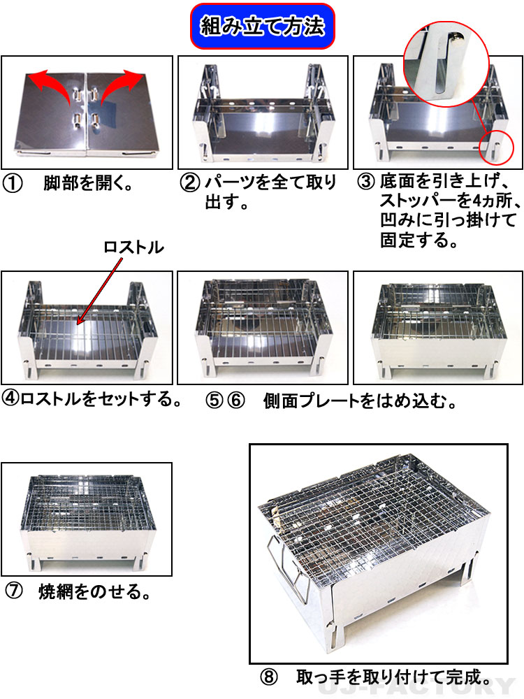 | 【 ここがポイント 】 ★天気の良い日にアウトドアでのバーベキューは最高!お店や家庭で食べる焼肉と異なりアウトドアでのバーベキューは、美味しい食事と開放感でストレス発散でエネルギー満タン♪ ★簡単組立!折りたたみ式でラクラク収納、超コンパクトで持ち運びに便利なバッグ付! ★溝付で串焼きにも対応、8ヶ所ある吸気口が燃焼を促進。 ★本体は丈夫でサビに強いステンレスを採用。丸ごと水洗いしやすいシンプルな構造。